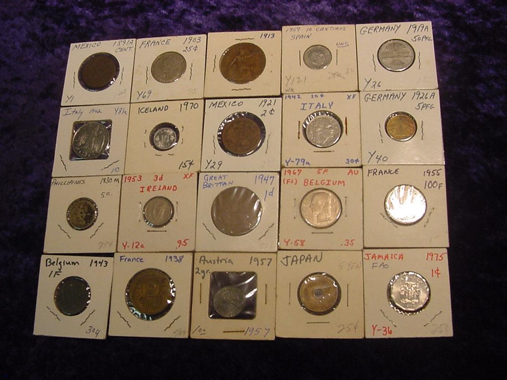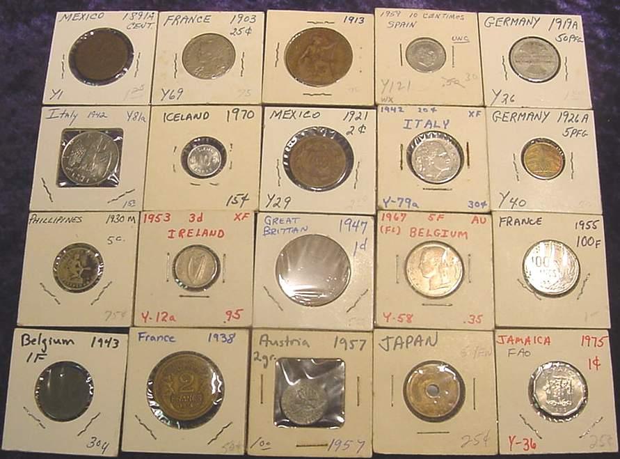 18. 20 Assorted foreign Coins In 2x2 holders. Dates From 1891-1975