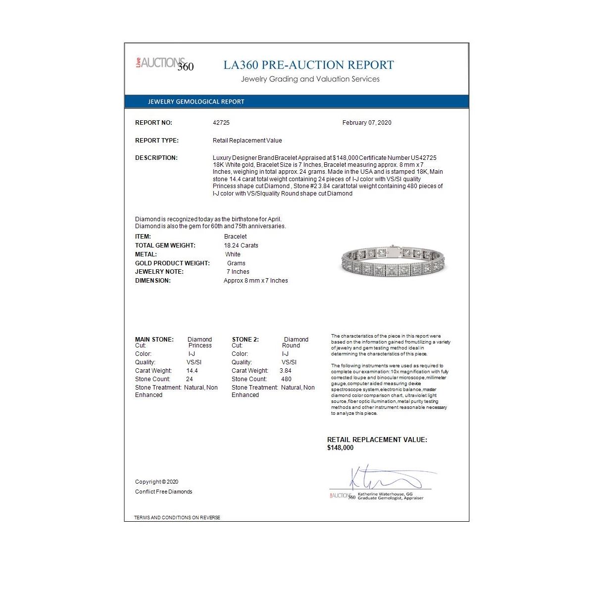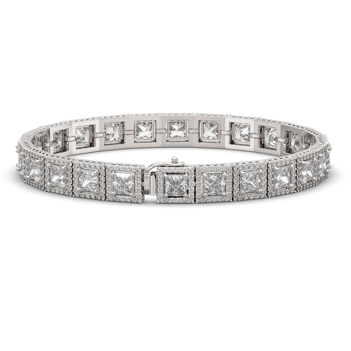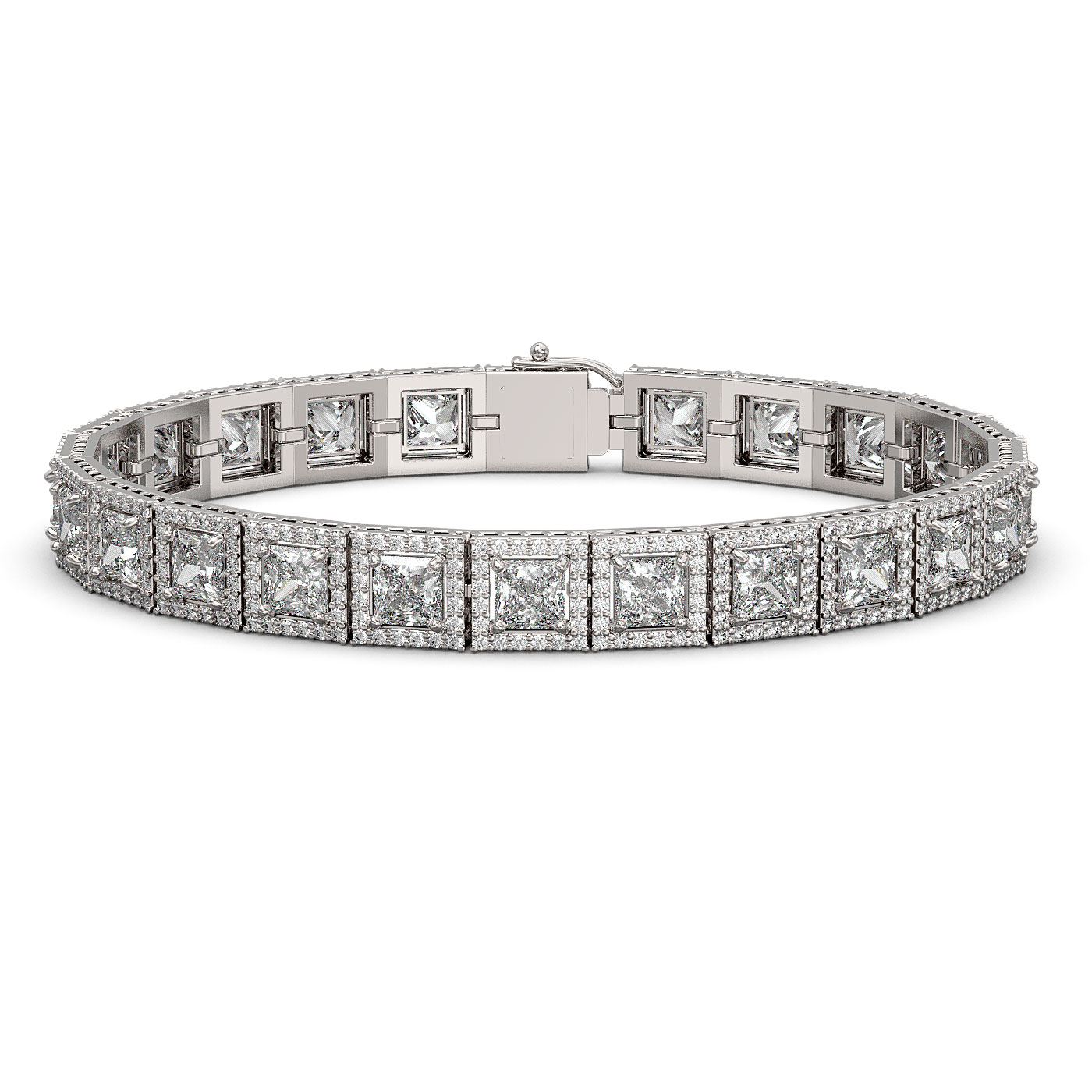 REF-2522R8K - SKU: 42725 ---- 18.24 ctw Princess Cut Diamond Micro Pave Bracelet 18K White Gold