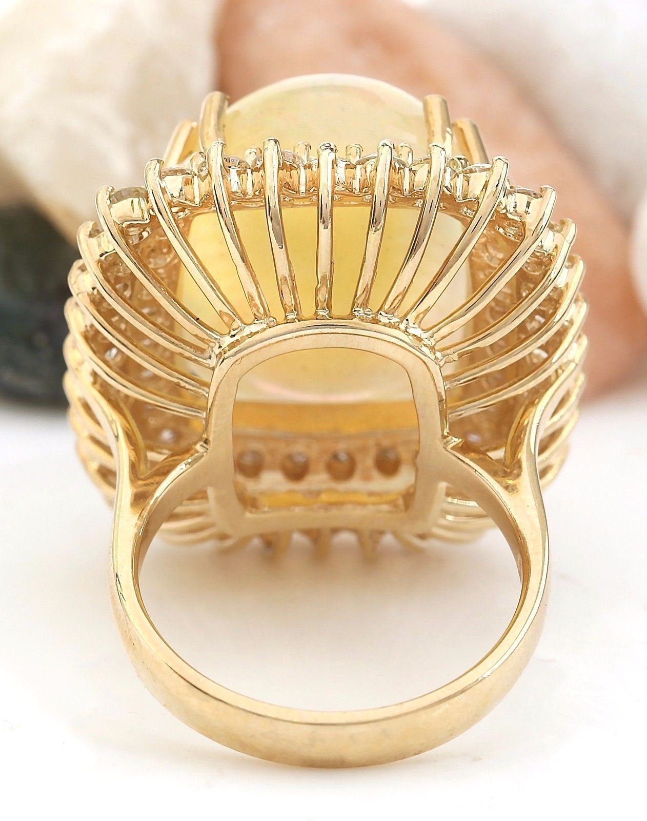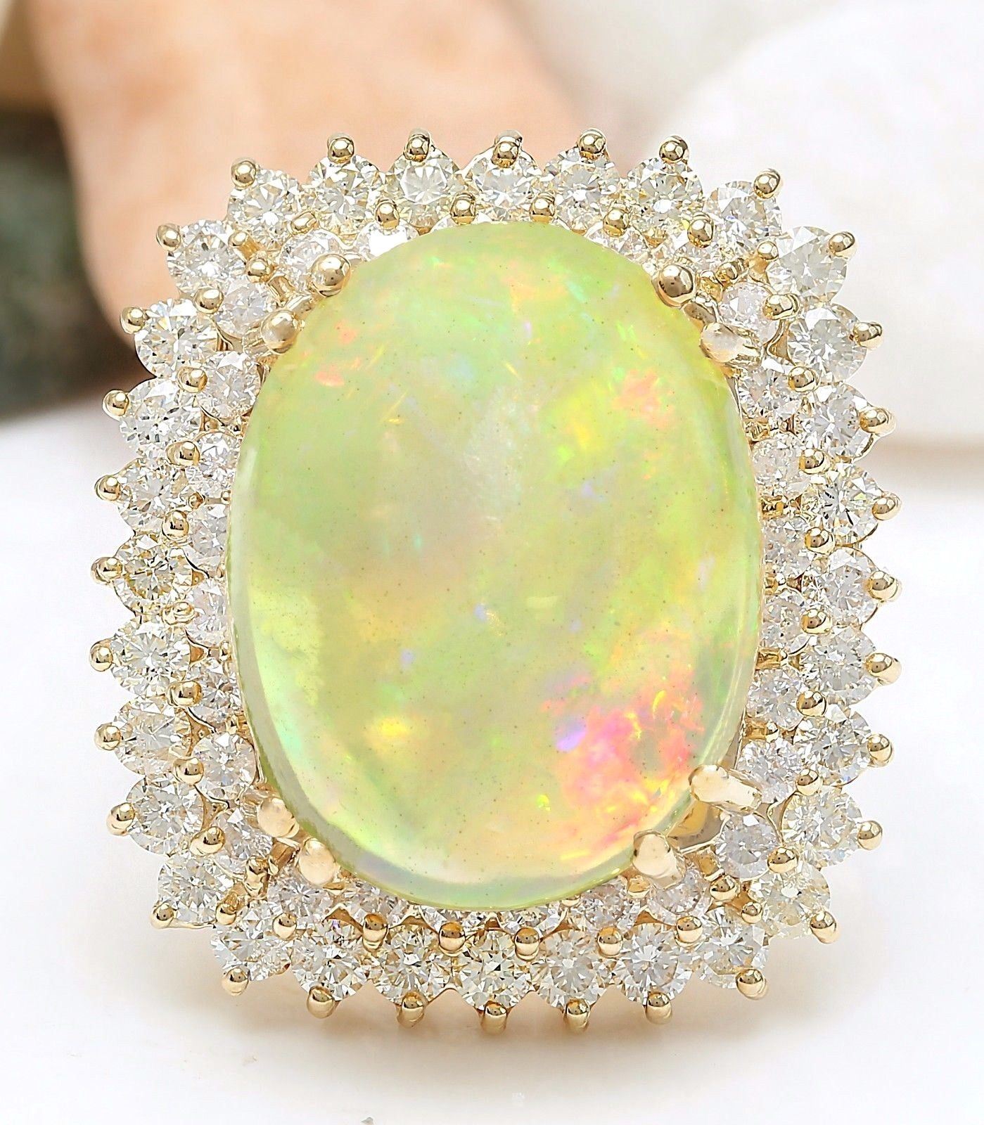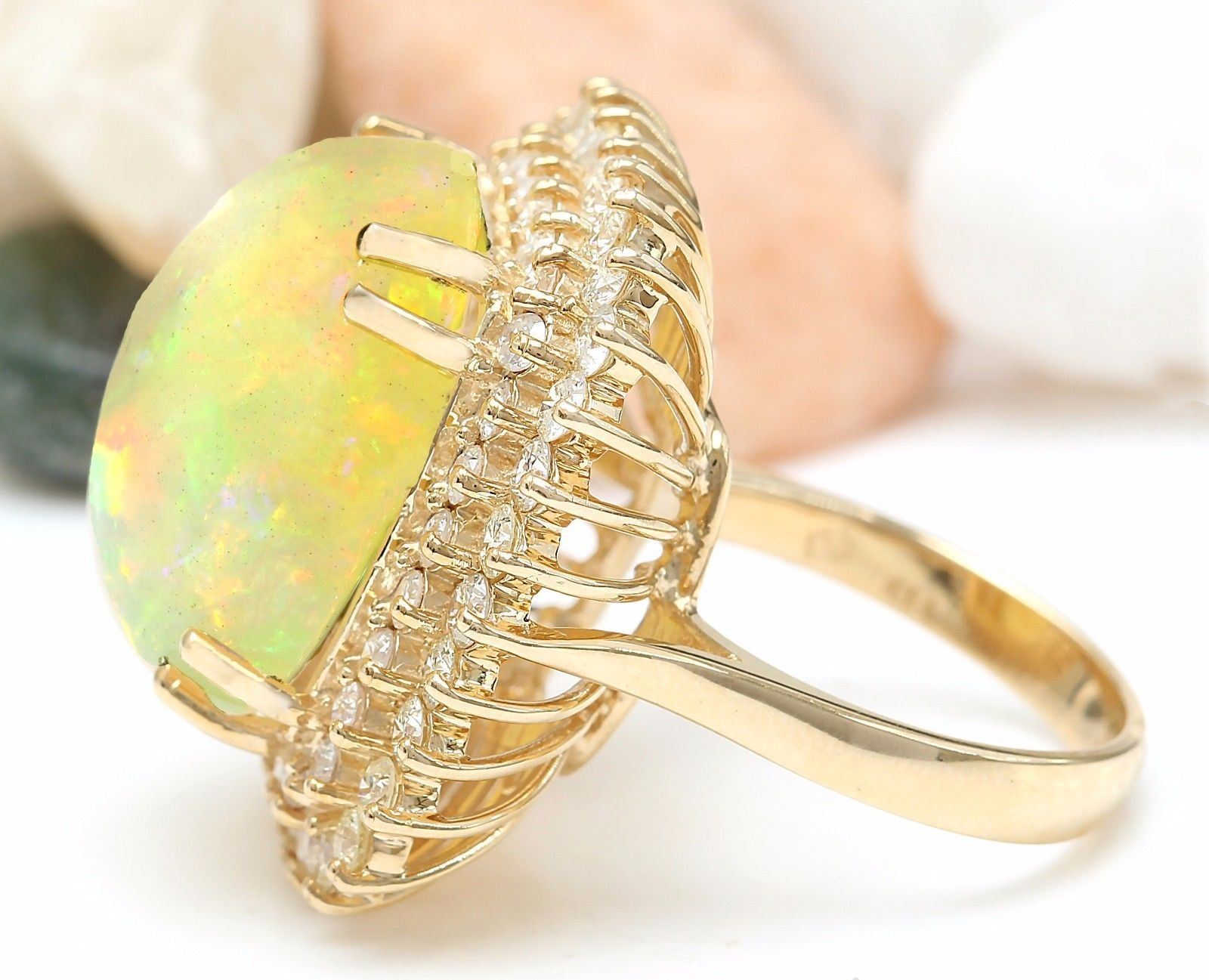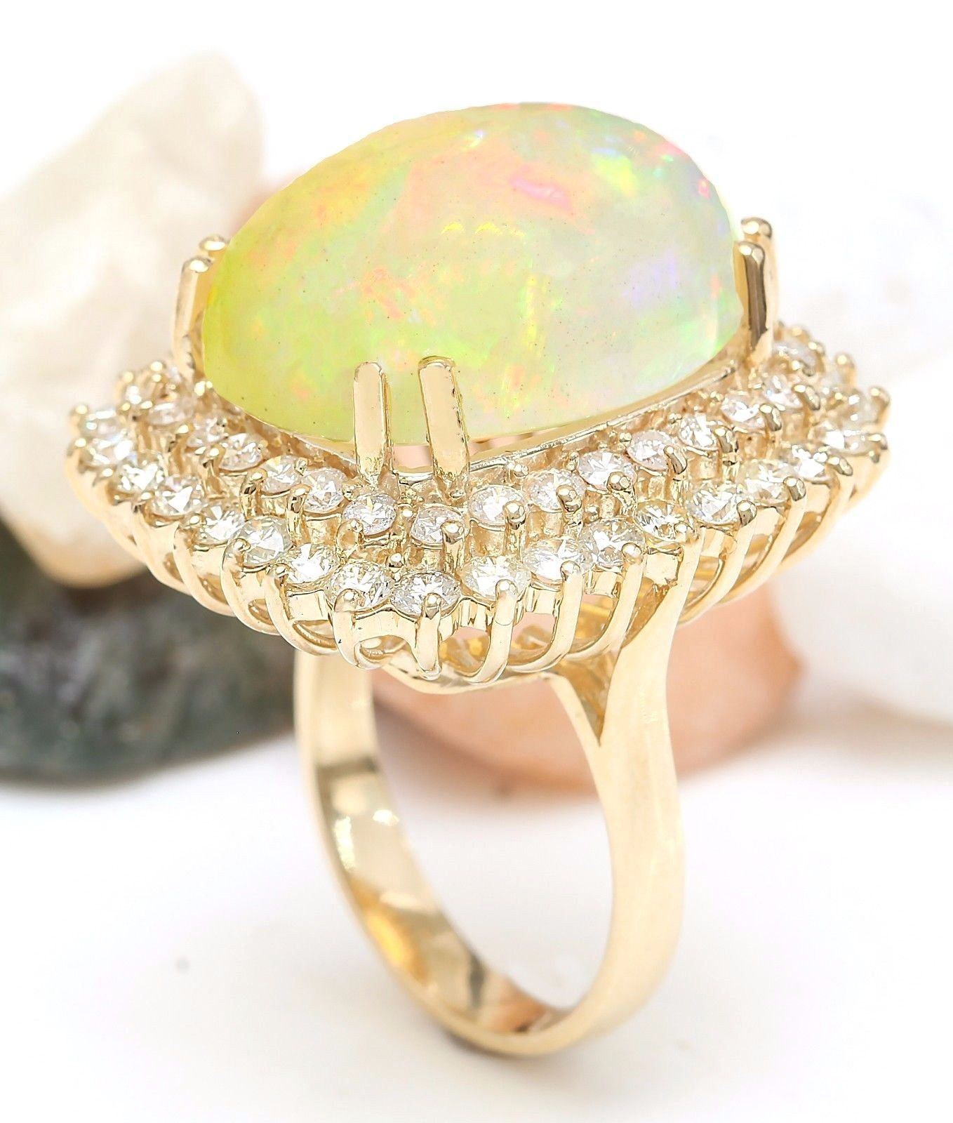 18.25 Carat Natural Opal 14K Solid Yellow Gold Diamond Ring