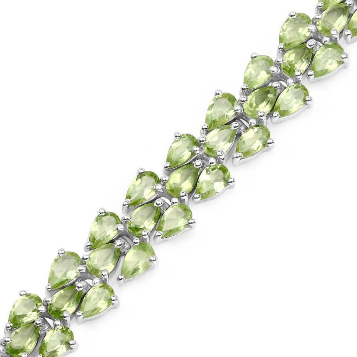 This is a 18.26 Carat Genuine Peridot .925 Sterling Silver Bracelet measuring 7.25 inches in length with a total gross weight of 20.85 (gm) | Gemstone Info: Peridot: Pears/5x3mm 83/18.26 ctw | Metal Info: .925 Sterling Silver weighing 17.198 (gm).