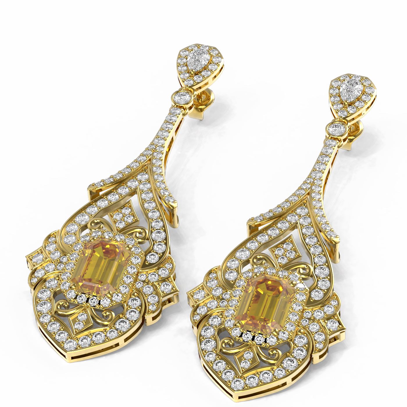 REF-846K2Y - SKU: 54310 ---- 18.29 ctw Canary Citrine & Diamond Earrings 18K Yellow Gold