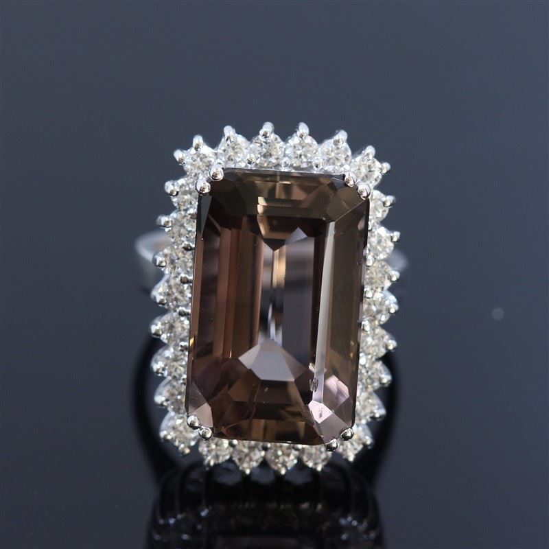 14 K WHITE GOLD BI-COLOR TOURMALINE RING:13.63 GRAMS / BI-COLOR TOURMALINE:18.33CT / DIAMOND:1.33CT / #GVR1560