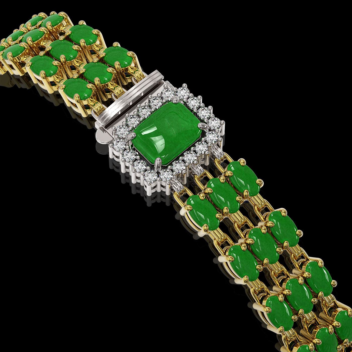 REF-318W2H - SKU: 45991 ---- 18.41 ctw Jade & Diamond Bracelet 14K Yellow Gold