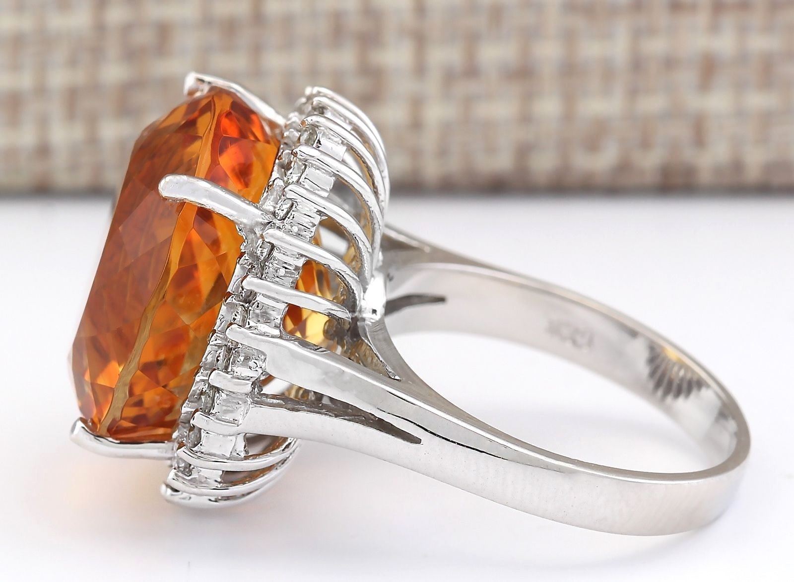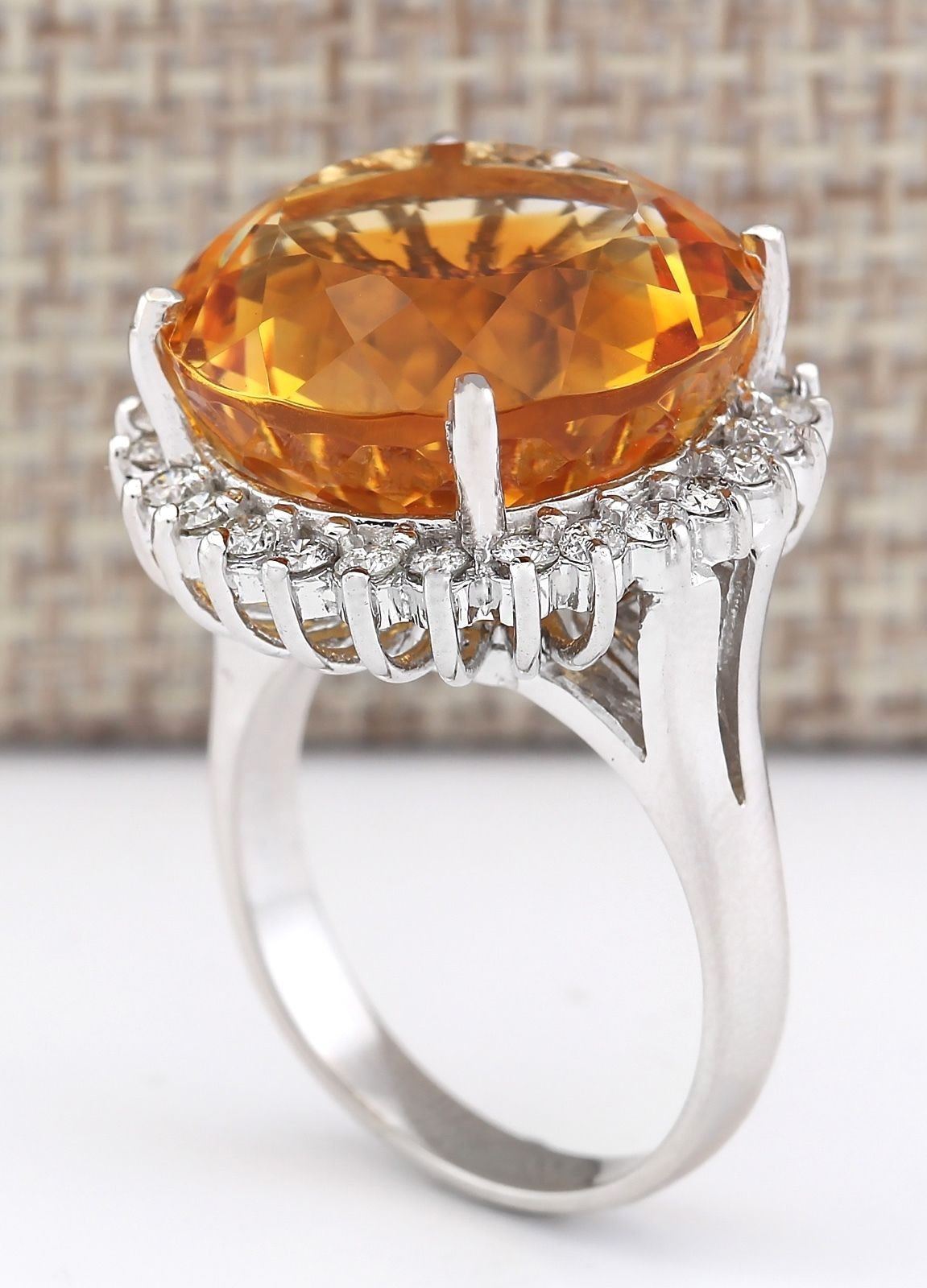 18.42 CTW Natural Citrine And Diamond Ring 14k Solid White Gold