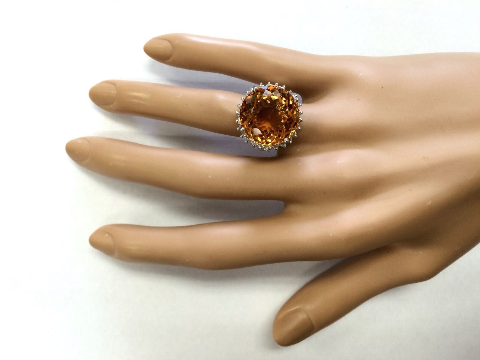18.42 CTW Natural Citrine And Diamond Ring 18K Solid White Gold