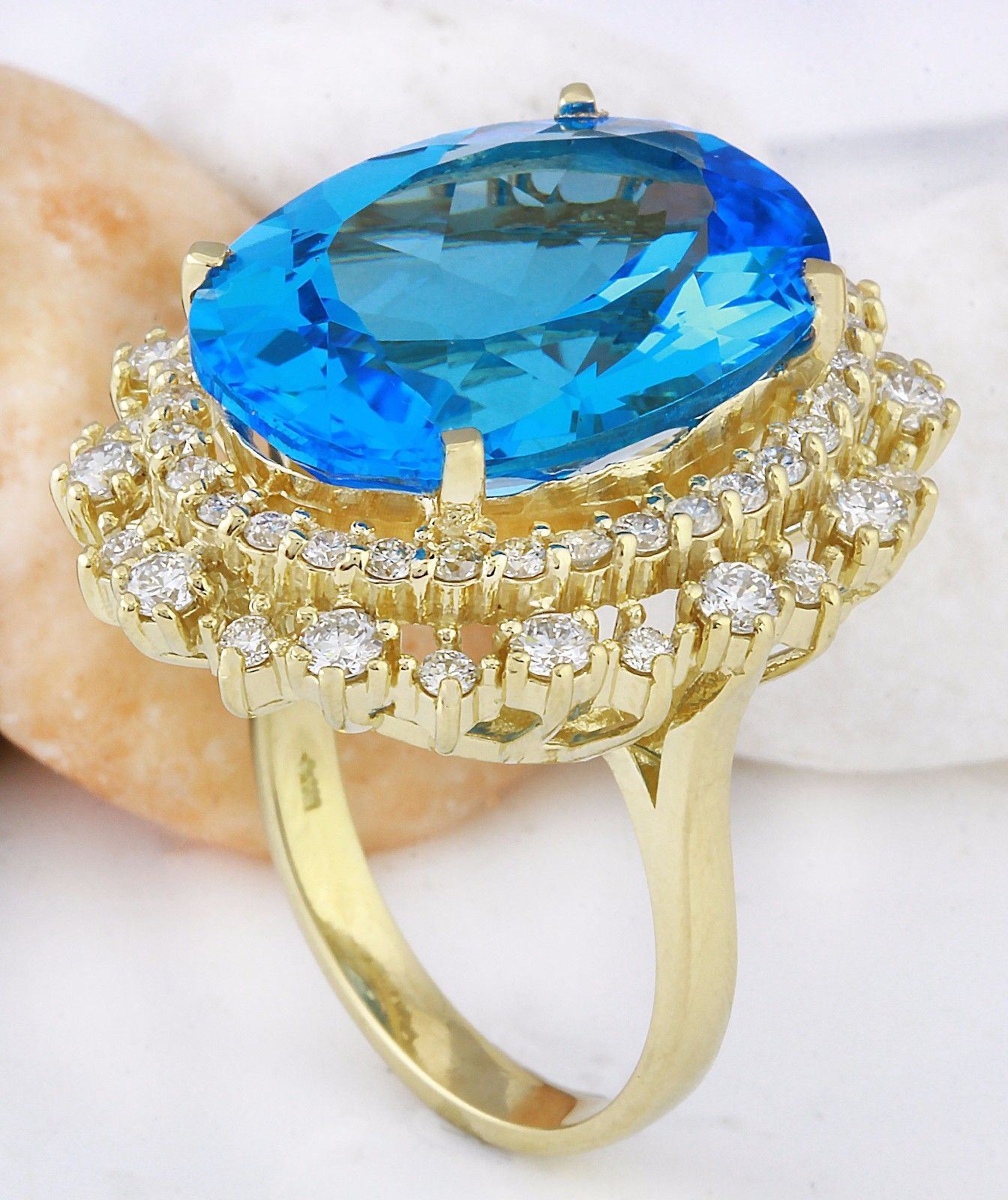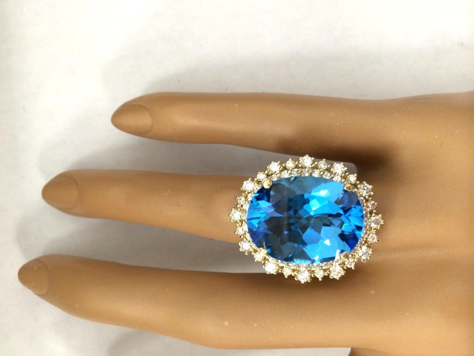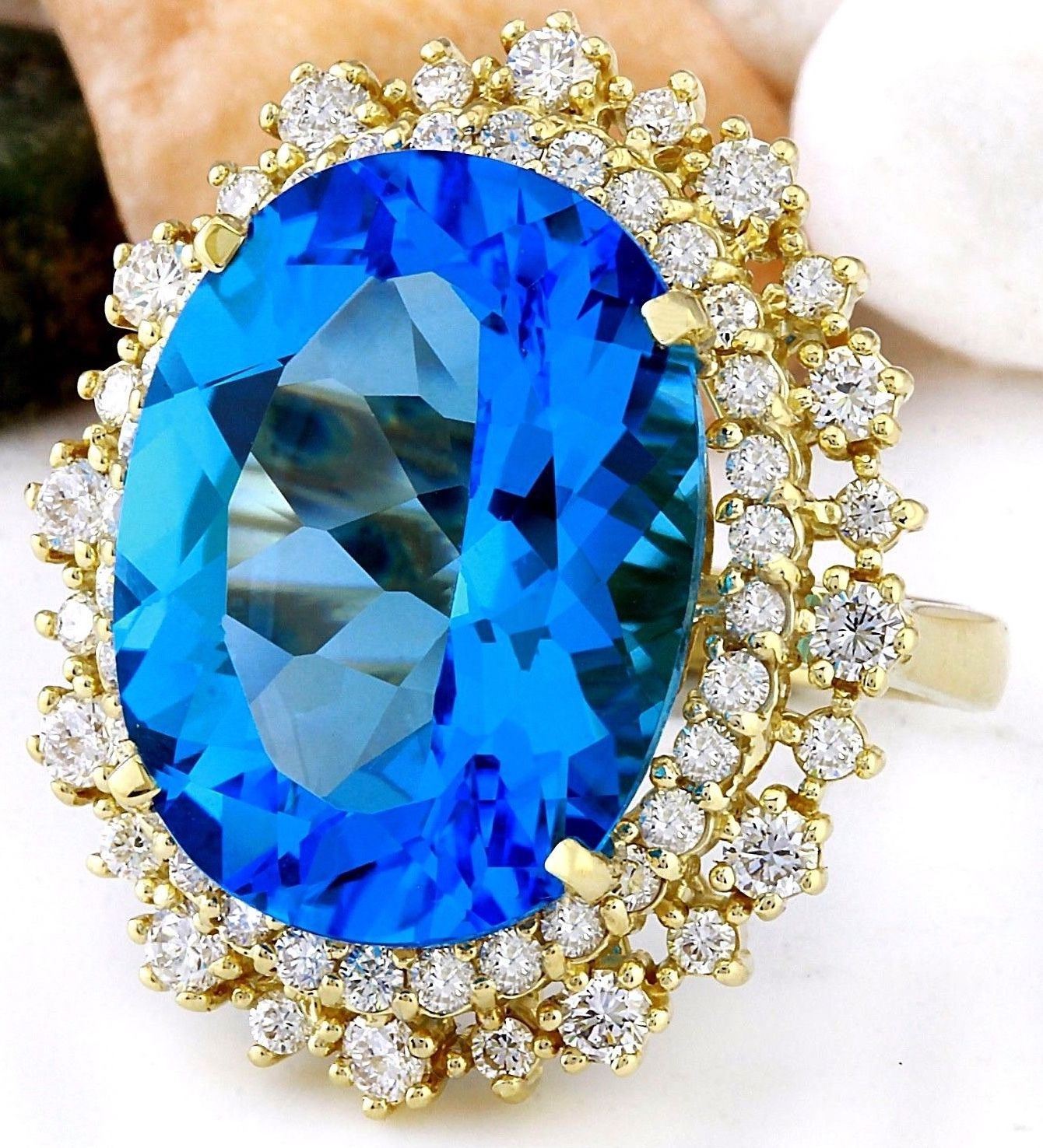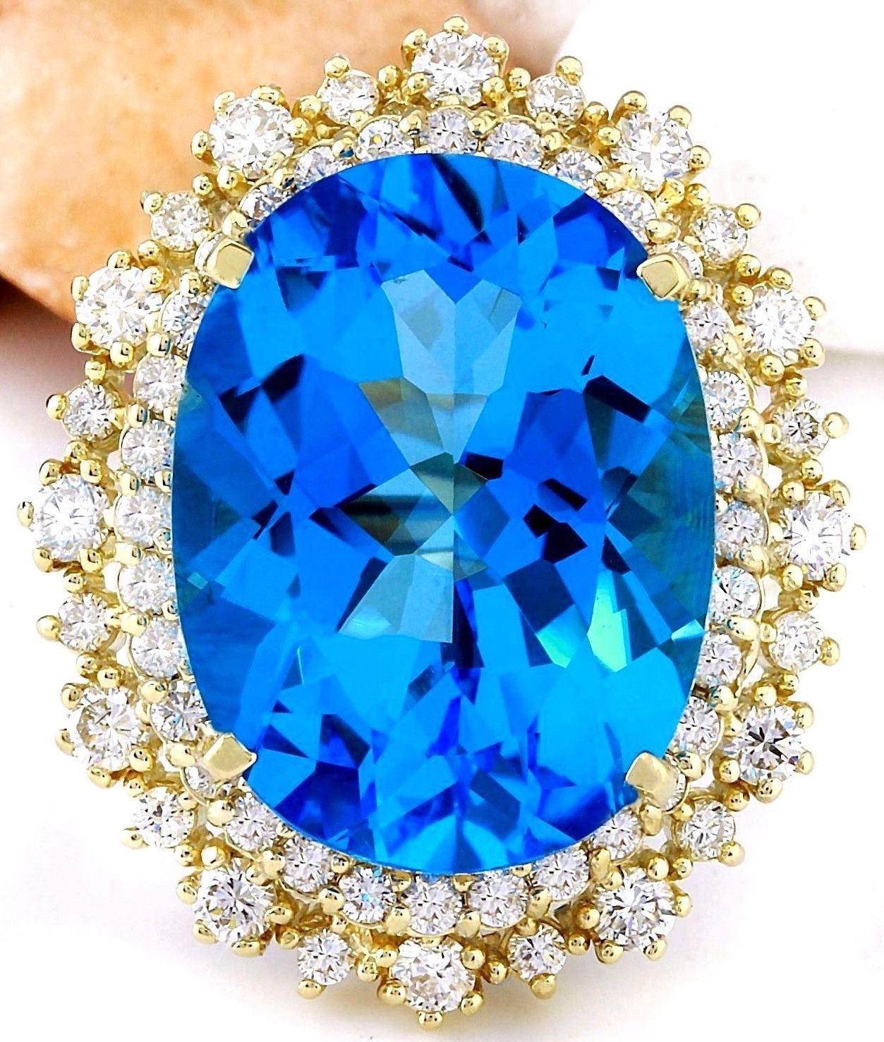 18.42 Carat Natural Topaz 18K Solid Yellow Gold Diamond Ring
