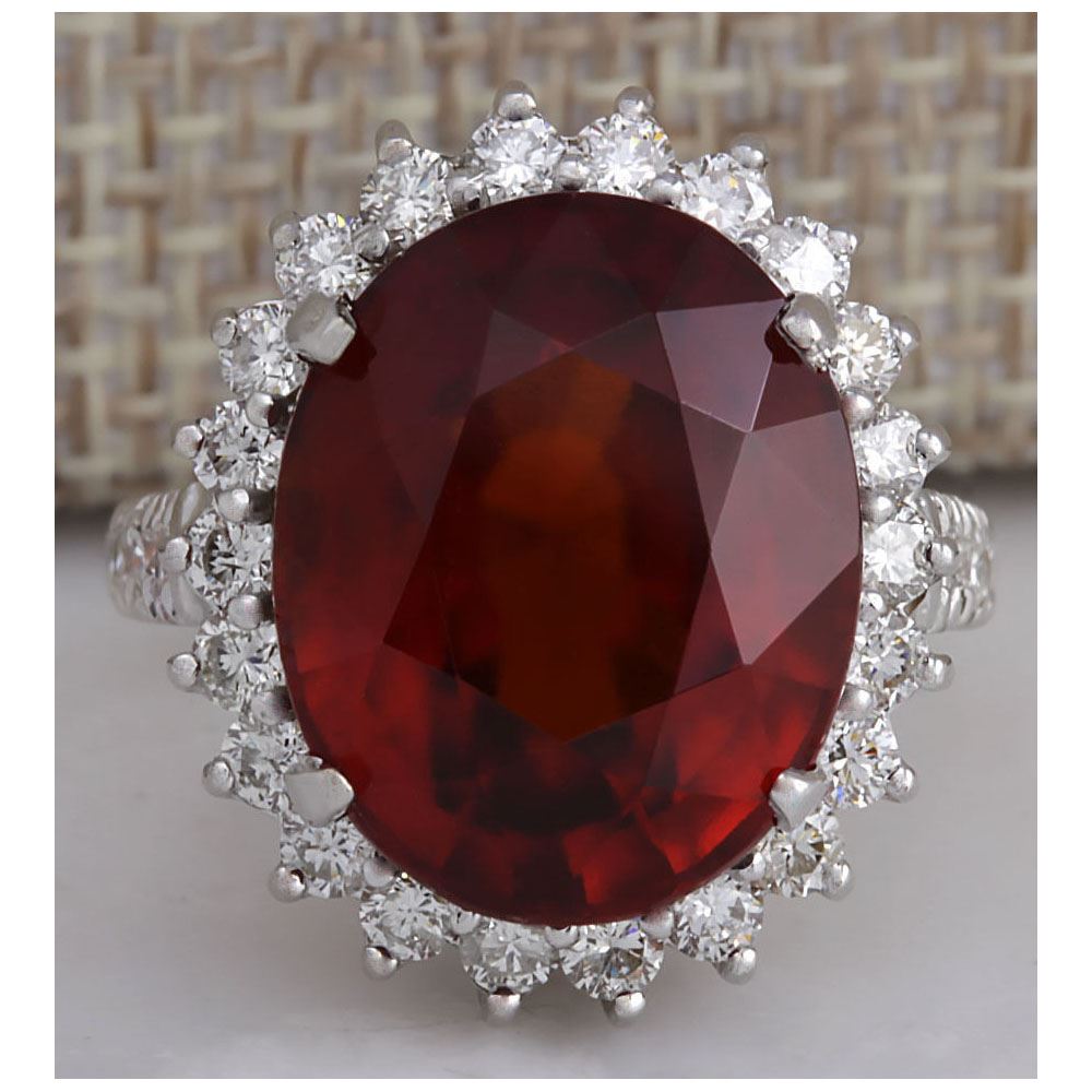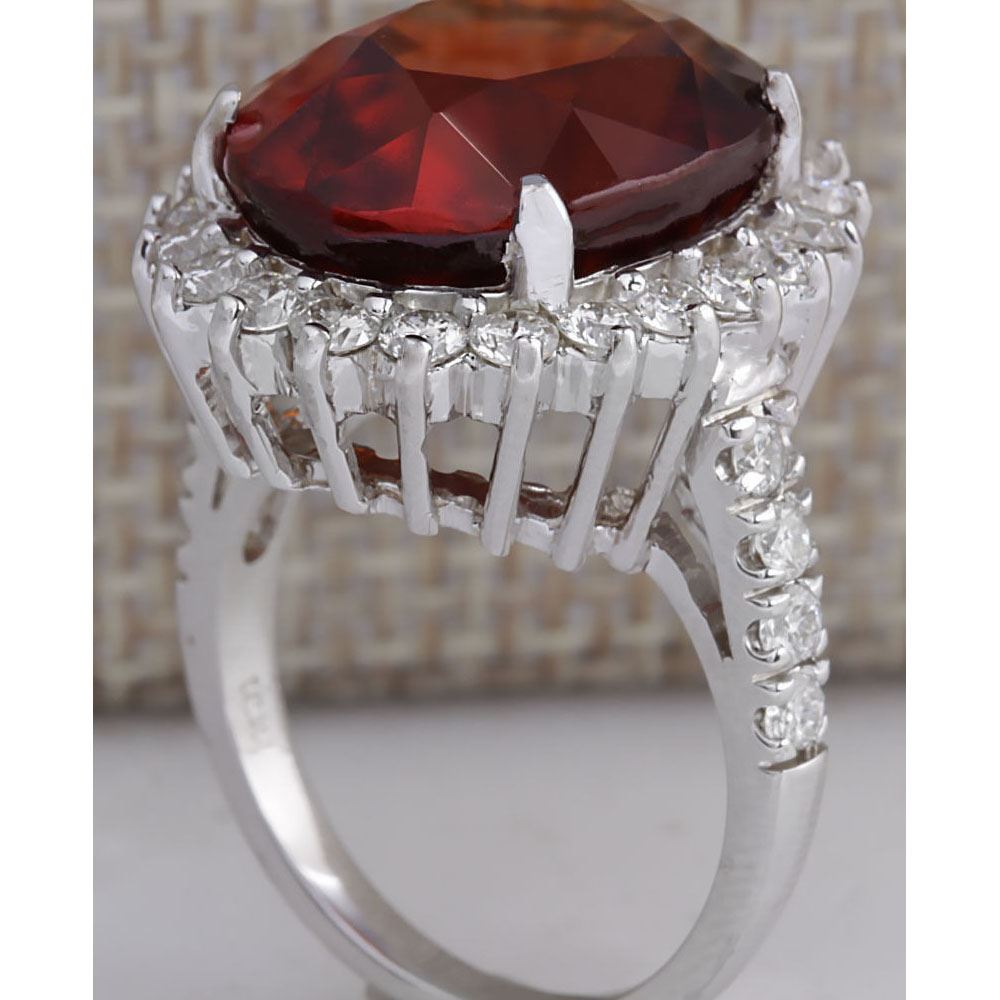 18.43 CTW Natural Red Hessonite Garnet And Diamond Ring In 18K White Gold