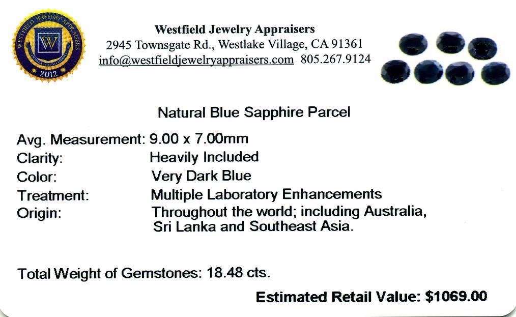 18.48cts Oval Cut Natural Blue Sapphire Parcel. Westfield Appraised at $1,069.00.