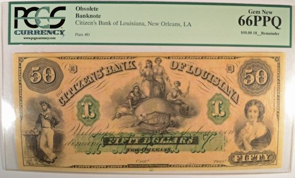 18__ $50 CITIZENS BANK OF LOUISIANA, NEW ORLEANS, LA PCGS 66 PPQ