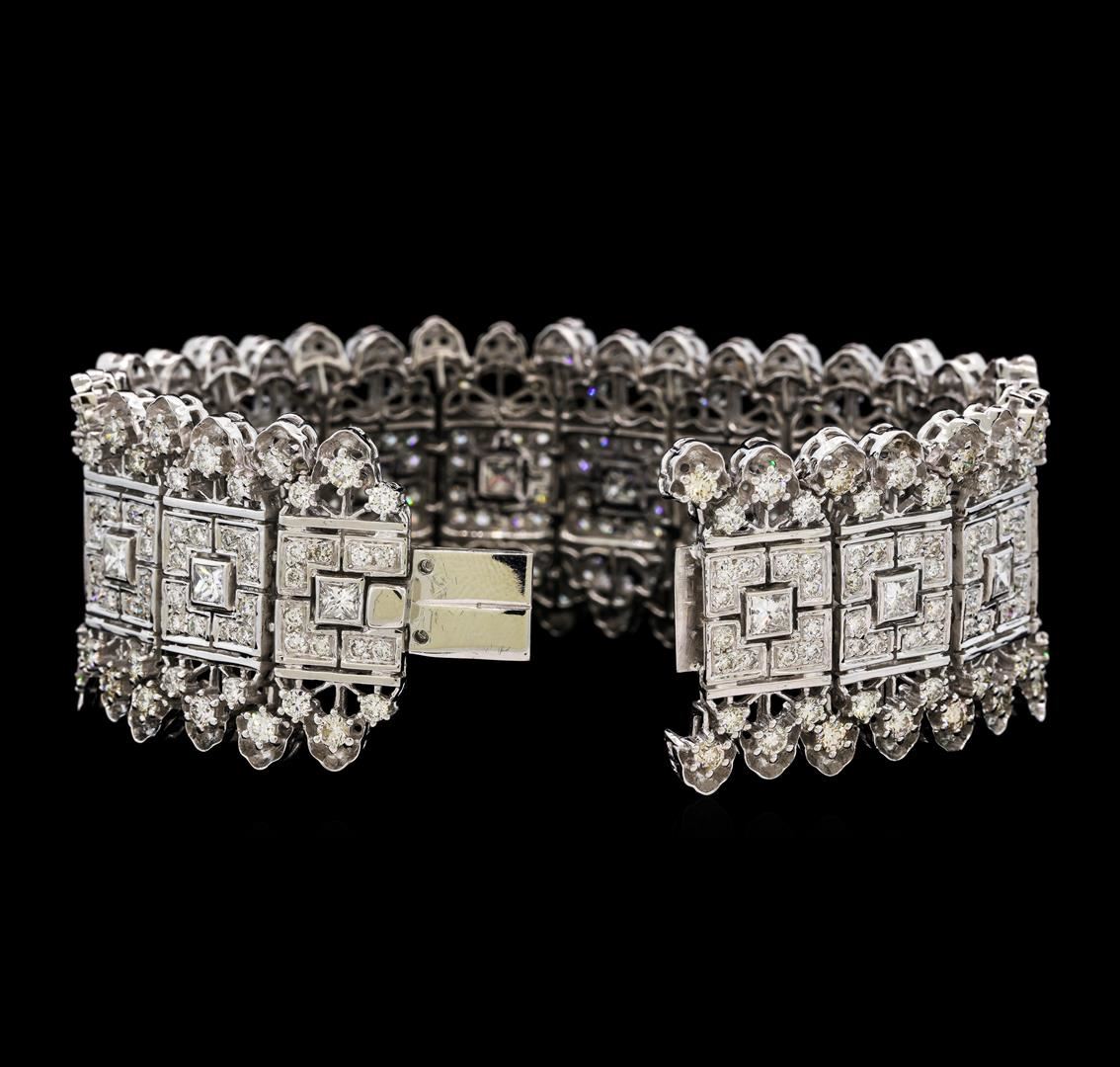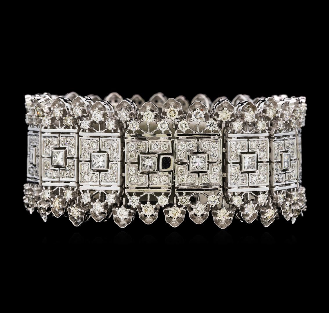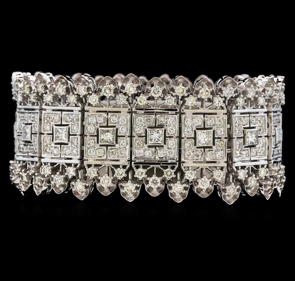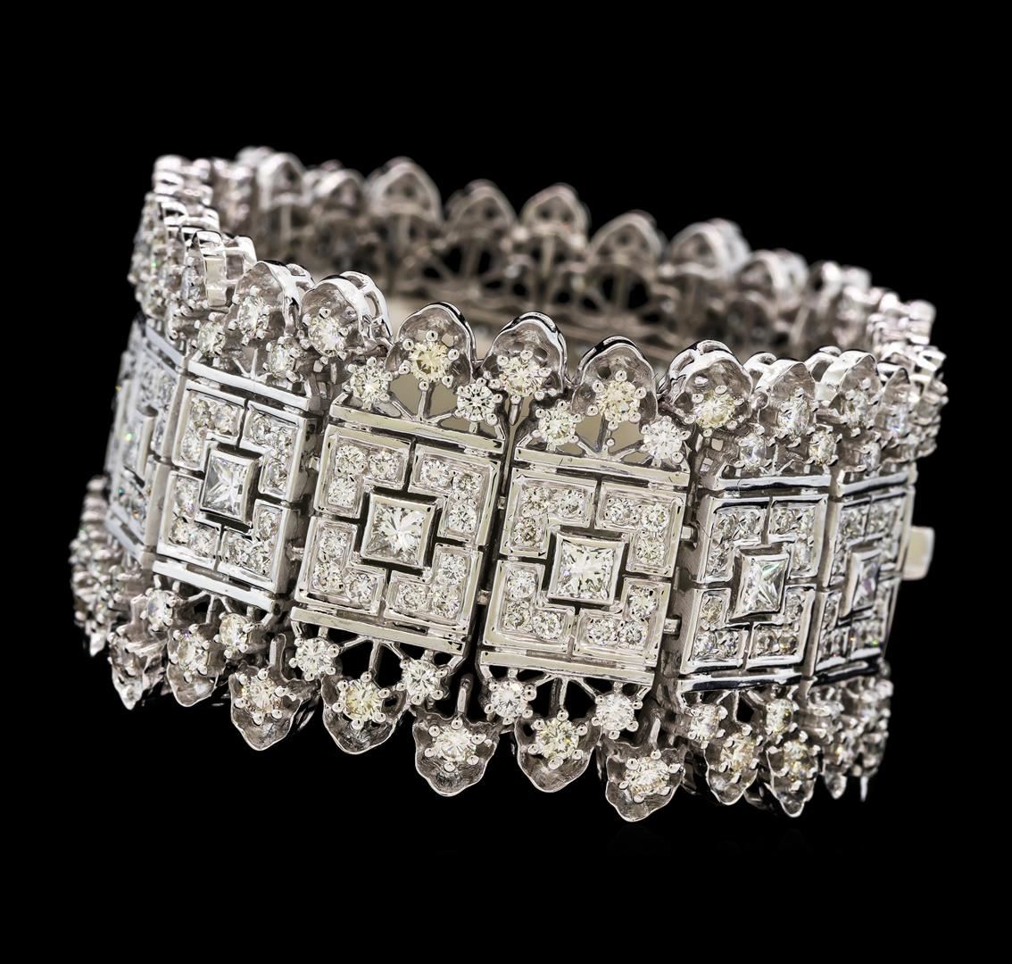 One lady's diamond bracelet including: 14KT White Gold weighing a total of 84.26 grams, round brilliant cut diamonds weighing a total of 12.88 ctw, and princess cut diamonds weighing a total of 5.66 ctw.