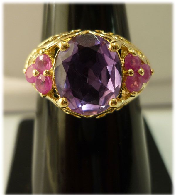 18.55 ctw 14K Gold plated silver amethyst Ring with To **|**|** 18.55 ctw 14K Gold plated silver amethyst Ring with Tourmaline ; MSRP: $1000