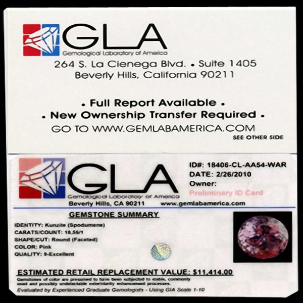 Excellent clear pink specimen round cut; lab quality evaluation 9; typical treatment likely; Gem Guide wholesale $1856-$2691; full retail appraisal $11414; full lab evaluation available