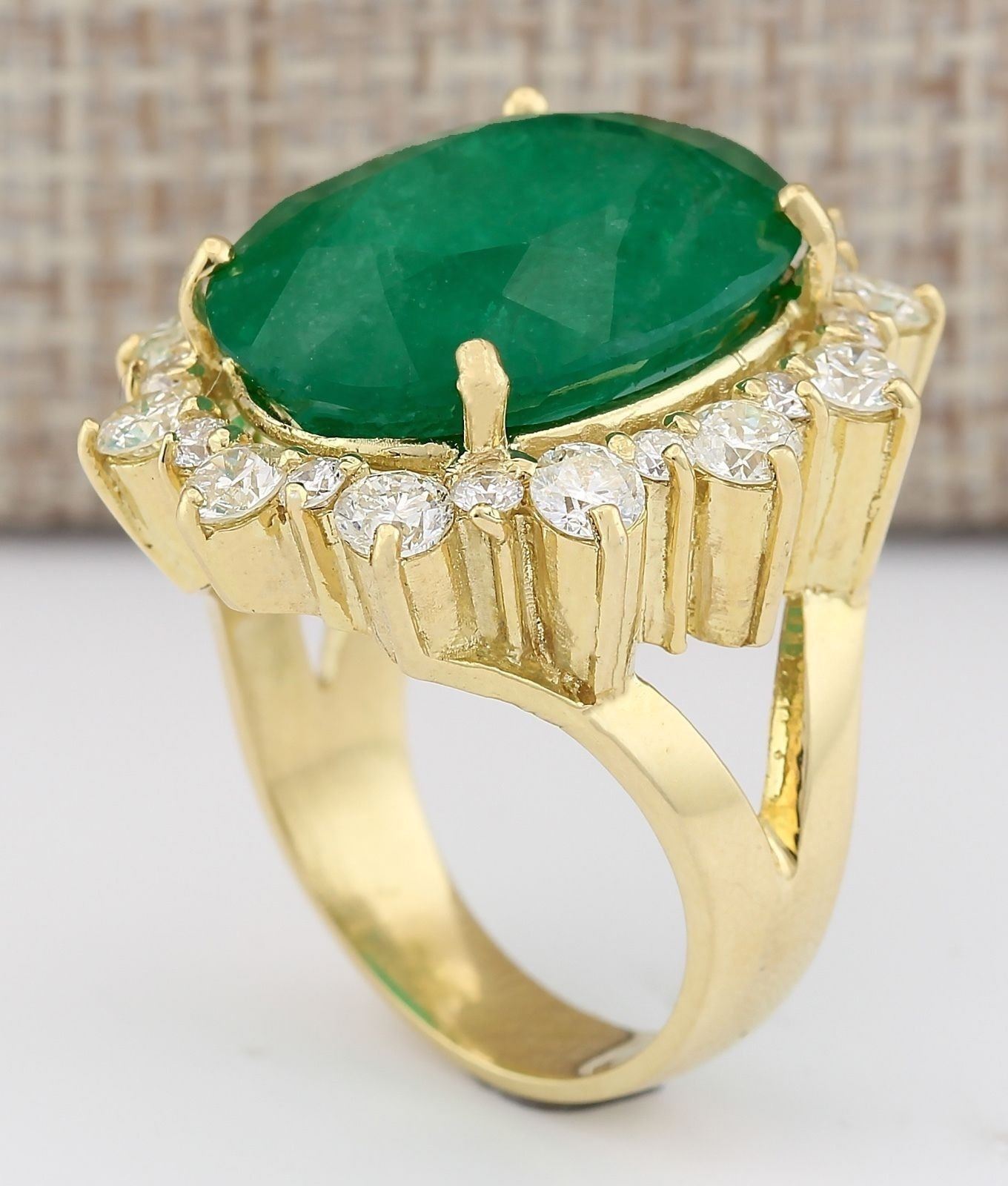 18.59 CTW Natural Emerald And Diamond Ring In 14k Yellow Gold