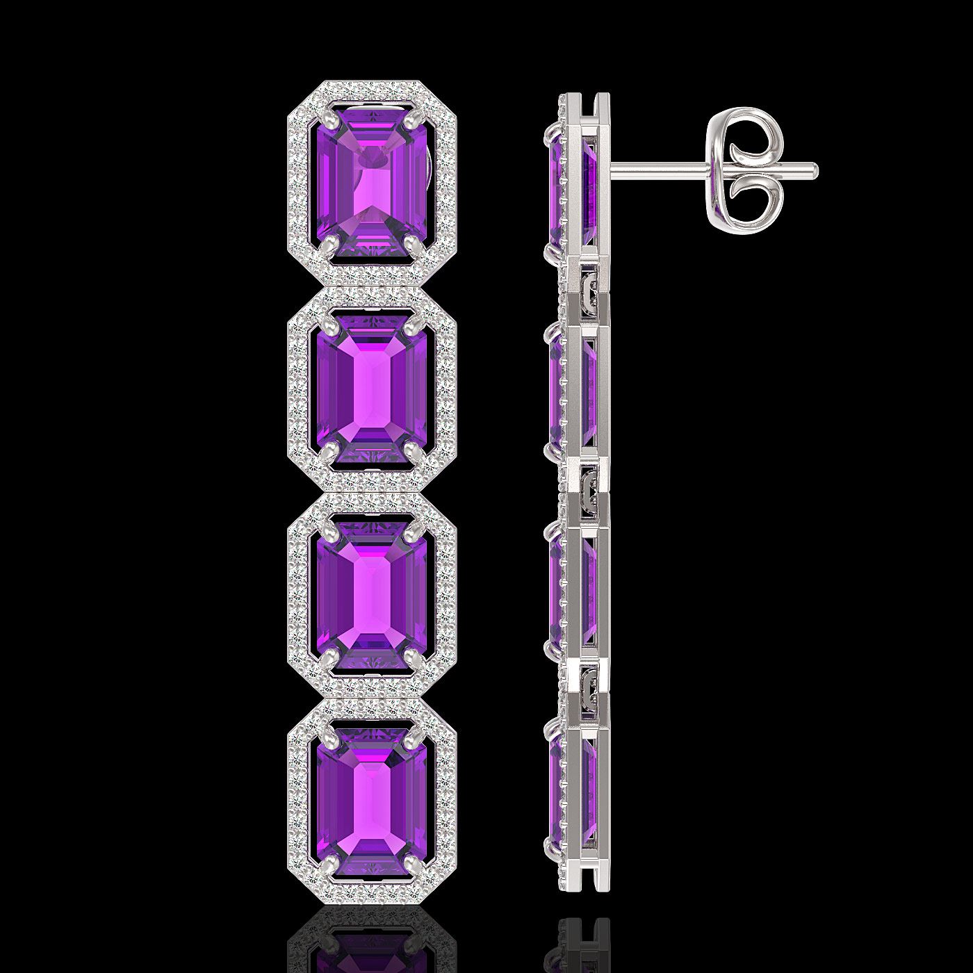 REF-209F3M - SKU: 41609 ---- 18.59 ctw Amethyst & Diamond Micro Pave Halo Earrings 10k White Gold