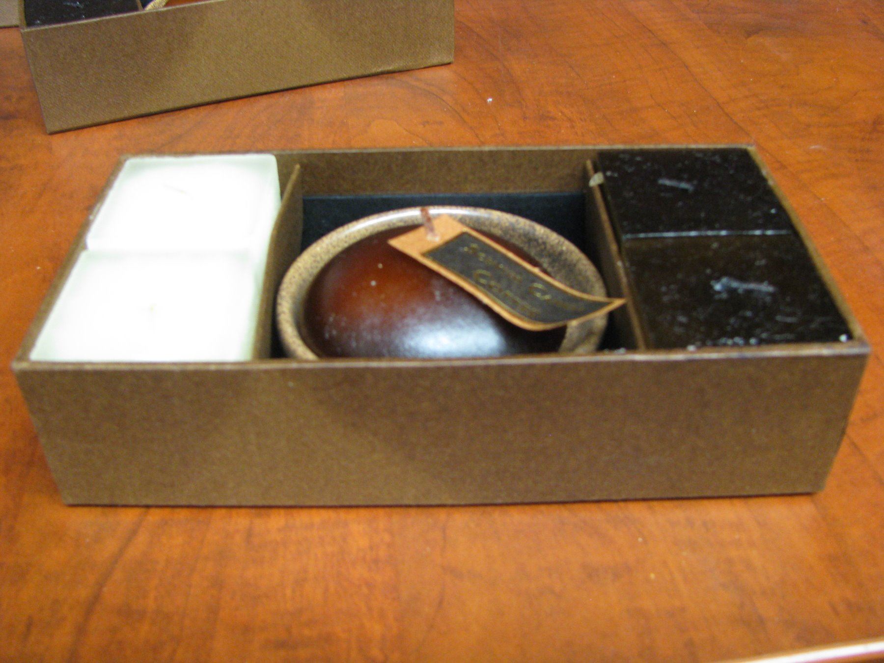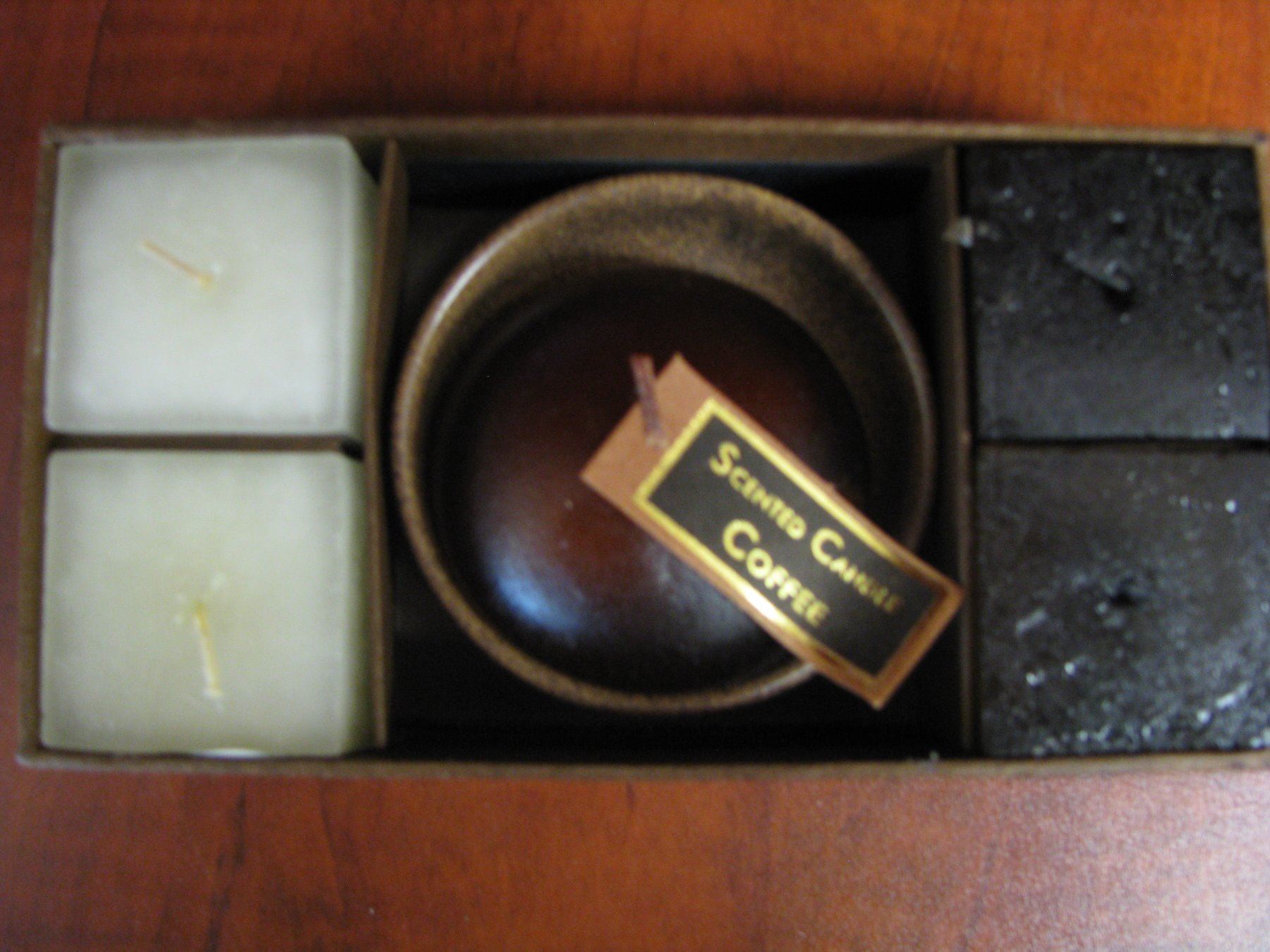 AXICON COFFEE SCENTED SETS, 6 SETS ARE SUN MELTED FROM BEING STORED