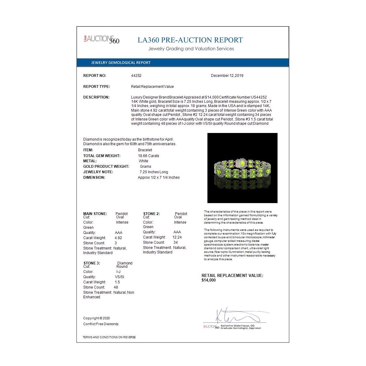 REF-254H5R - SKU: 44252 ---- 18.66 ctw Peridot & Diamond Bracelet 14K White Gold