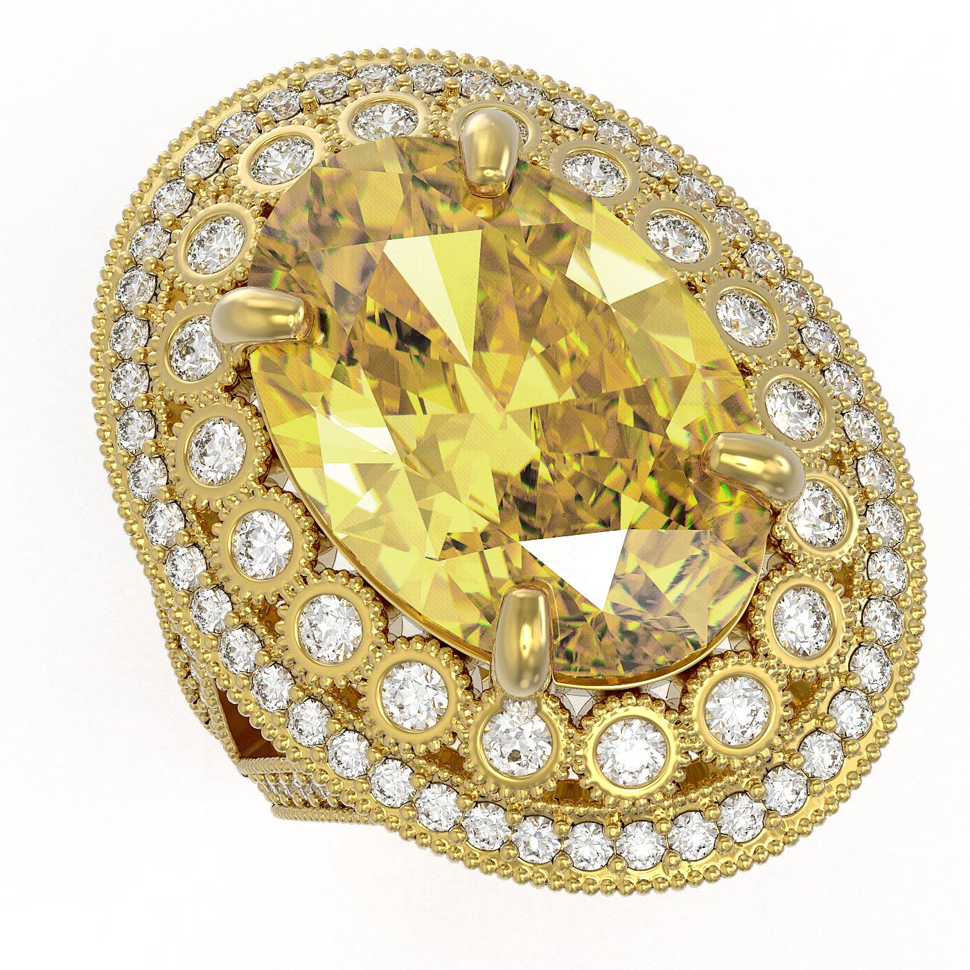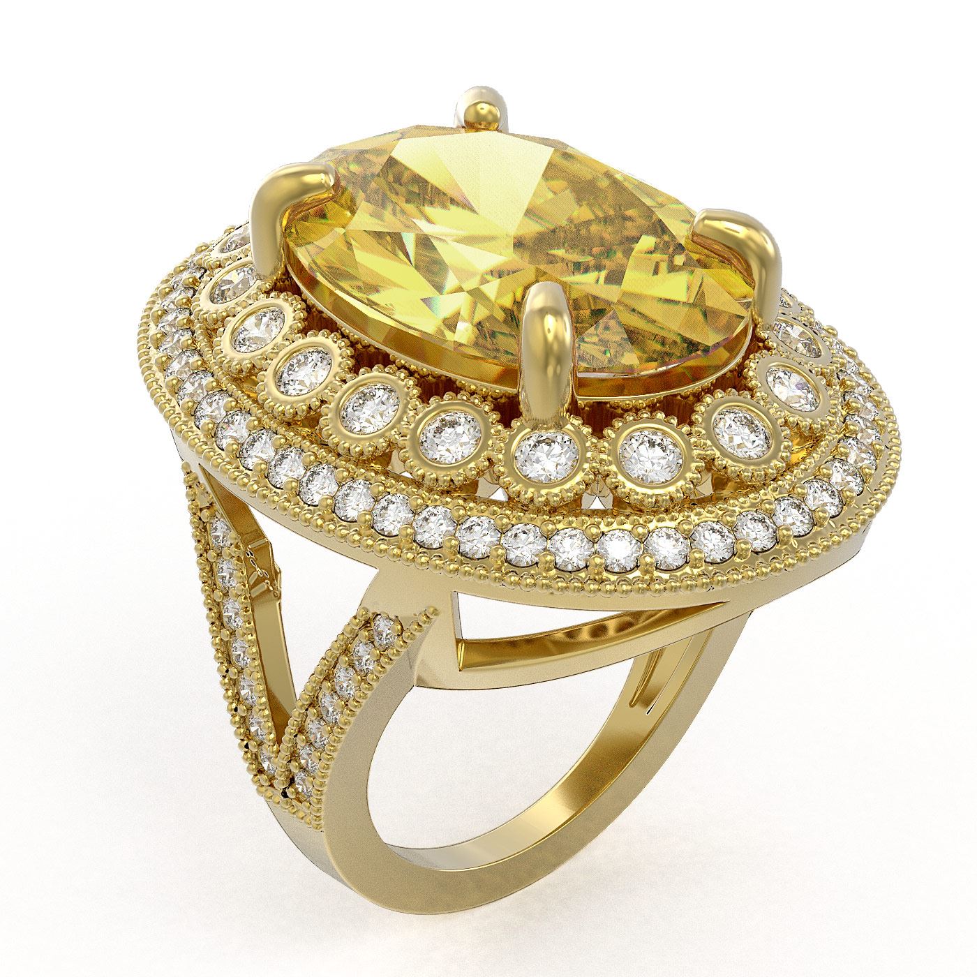 18.67 ctw Canary Citrine & Diamond Victorian Ring 14K Yellow Gold