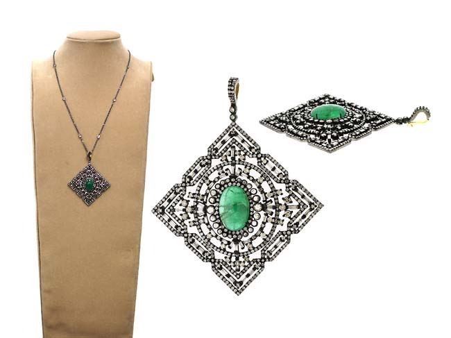 EMERALD AND DIAMOND IN WHITE TOPAZ SILVER NECKLACE/Diamond 1 TCW:5.38/Diamond Color & Clarity:J-L/I1-I2/Diamond 2 TCW:/Gemstone Count 1: /Gemstone 1 TCW:13.4/Pendant Dimension:/Chain Length:/Gemstone 2 TCW:/Gemstone 3 TCW:xxx/Metal Type 1:18KxxxYELLOW GOLD/Gram Weight:0.87/Metal Type 2:/Weight Gram:xxx&.925 SILVERSTERLING SILVER/Weight Gram:17.8/Gross Weight:22.46