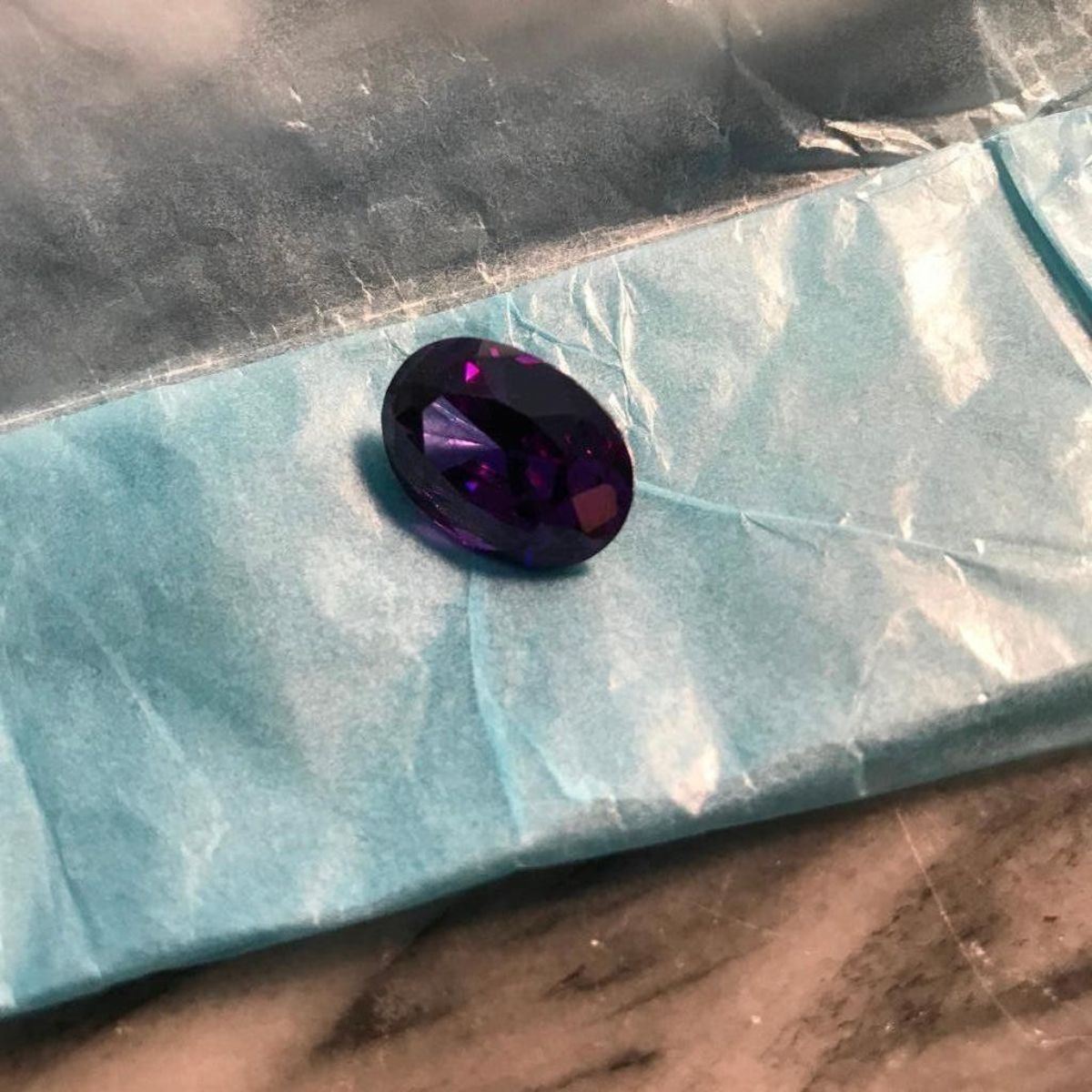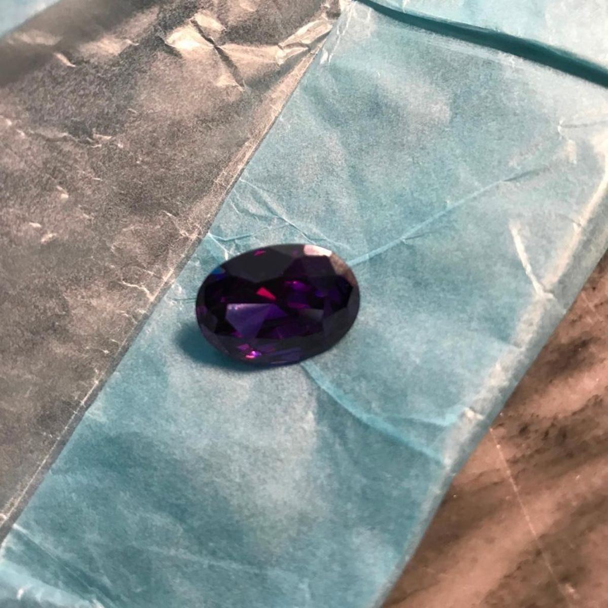 18.86ct lab grown ( SYNTHETIC ) amethyst, corundrum crystal gemstone, oval cut, 13 X 18mm size with purple blue flash. Thailand origin. Ready to be set into a beautiful ring or pendant.Â