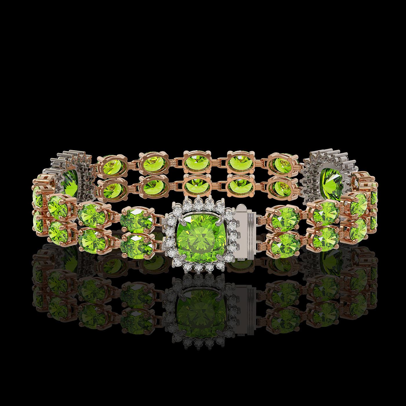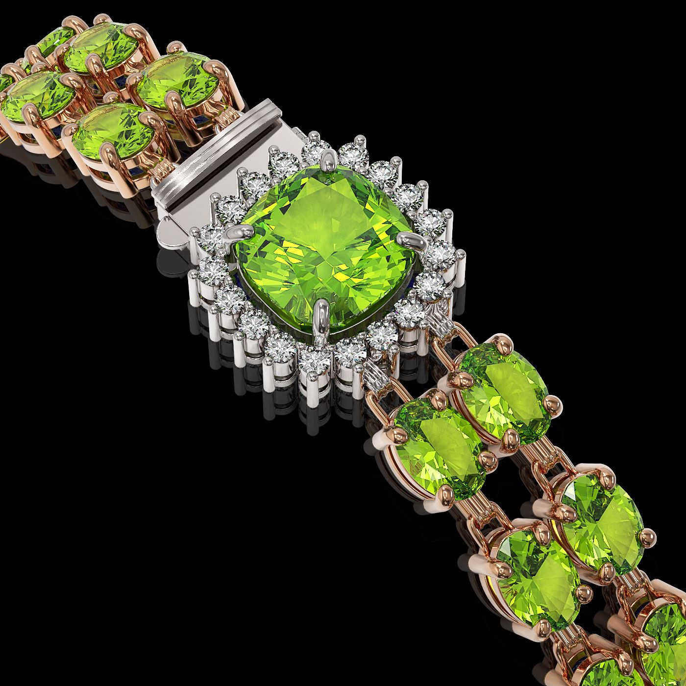 REF-259K3Y - SKU: 44766 ---- 18.93 ctw Peridot & Diamond Bracelet 14K Rose Gold