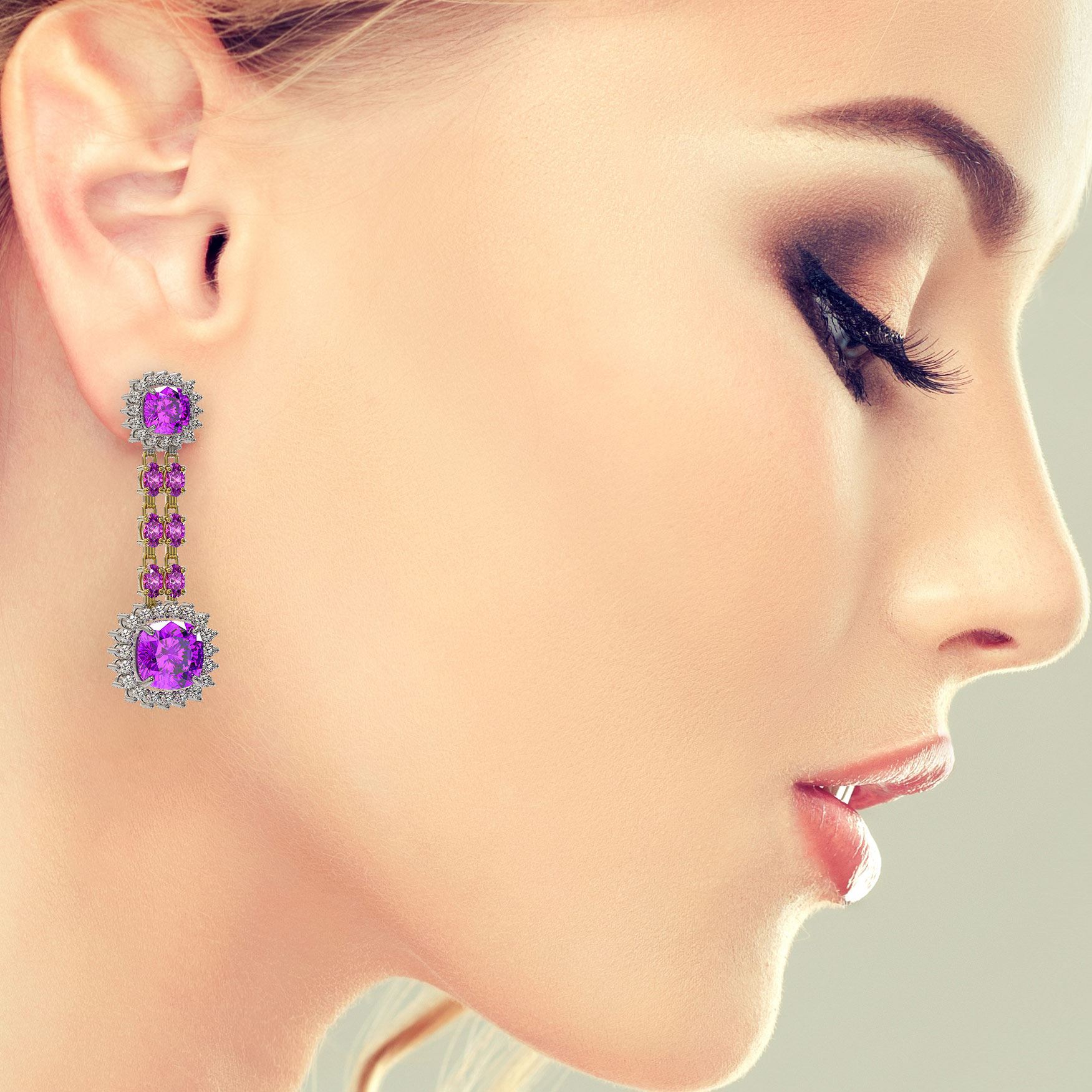SKU: 44950 ---- 18.96 ctw Amethyst & Diamond Earrings 14K Yellow Gold