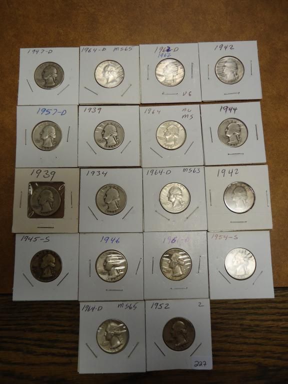 18 ASSORTED WASHINGTON SILVER QUARTERS