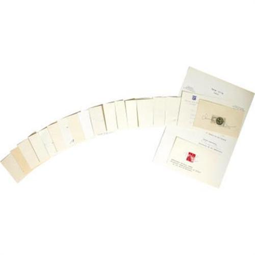 <B>Magnificent Collection of 18 Autographs Featuring Prominent Israelis,</B></I> all on 5” x 3” autograph cards affixed with an appropriate U.S. commemorative stamp. The following personalities are included: Moshe Arens, Menahim Begin, Michael Comay, Abba Eban, Chaim Herzog, Moshe Katsav, Ephraim Katzir, Teddy Kolleck, Golda Meier, Yitzhak Navon, Benjamin Netanyahu, Ehud Omert, Shimon Peres, Yitzhak Rabin, Yitzhak Shamir, Ariel Sharon, Yosef Takoah and Ezer Weizman. All are in excellent condition.<BR><BR><b>Shipping:</b> Flat Material, Small (<a target="_blank" href="http://www.heritageauctions.com/common/shipping.php">view shipping information</a>)