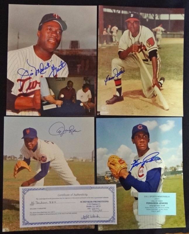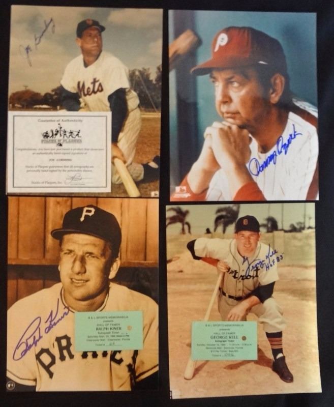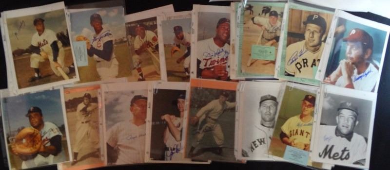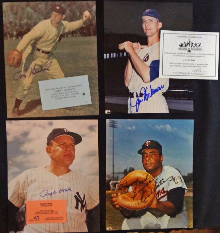 EARLY WYNN, EARL BATTEY, JOE GINSBERG, CAL ABRAMS, DANNY OZARK, SHERMAN JONES, WILLARD HUNTER, TOMMY HENRICH, JIM HICKMAN, RALPH HOUK, RALPH KINER, GEORGE KELL, JIM "MUDCAT" GRANT, AL JACKSON, SAM JETHROE with SHOW TICKET / ADVERTISED COA's, SOME WITH PICTURES OF SIGNING, NICE VINTAGE LOT, ESTIMATE $340-$380