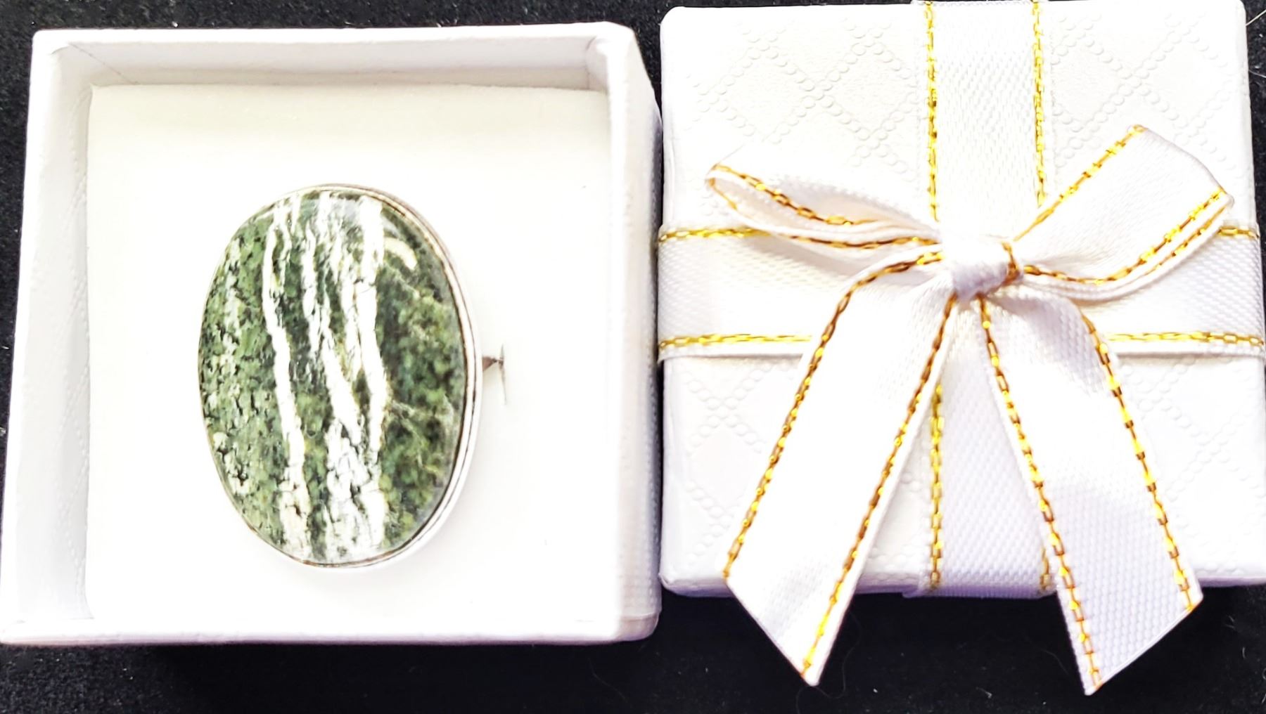 18) BEZEL SET STAMPED 925, SIZE 9 GREEN SWISS OPA