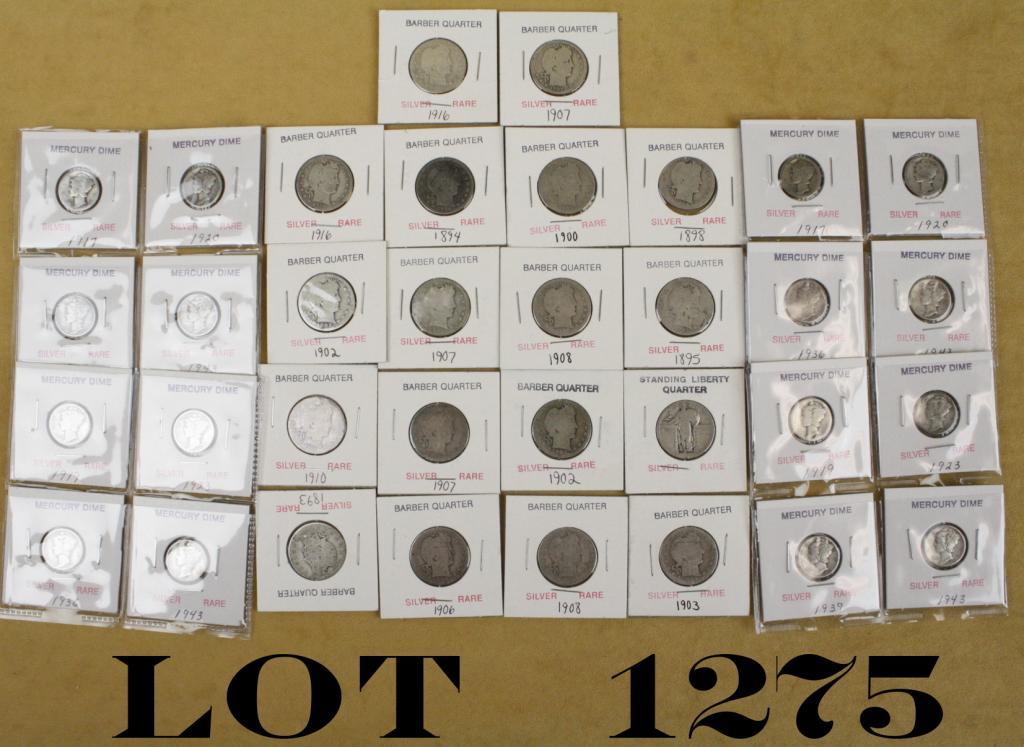 18 Barber quarters, 1895 to 1900 dates. Other misc. coins, not graded. Est: $100 - $300