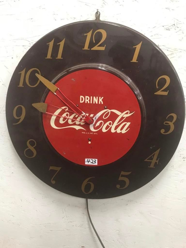 18" COCA COLA CLOCK 1950s METAL NOT RUNNING
