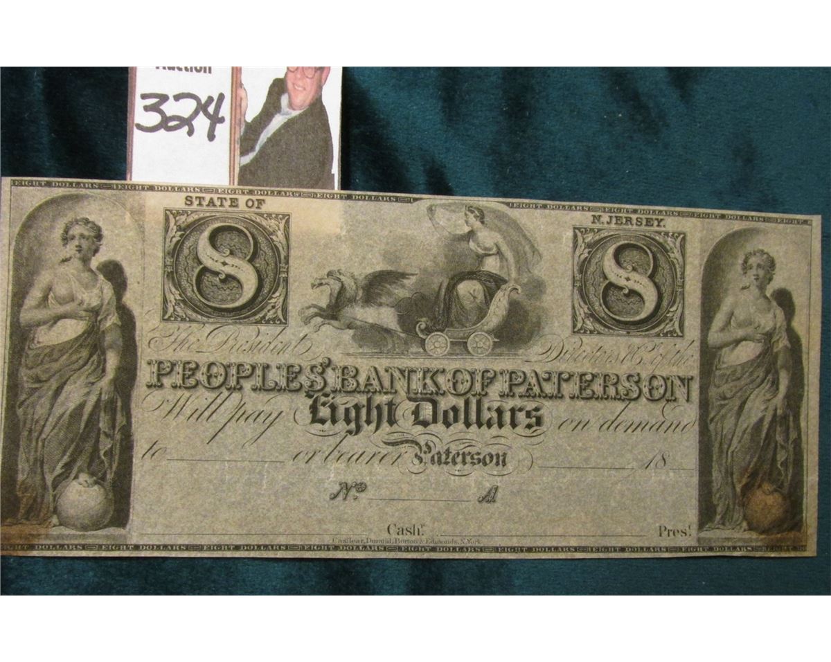 18__ Eight Dollar "Peoples' Bank of Paterson" State of New Jersey, Broken Bank Note, either Unissue