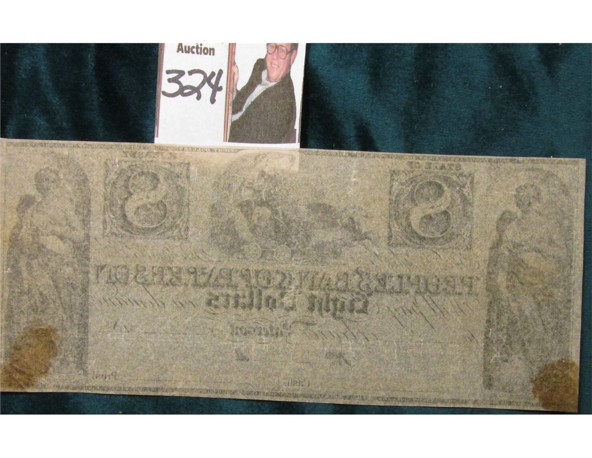 18__ Eight Dollar "Peoples' Bank of Paterson" State of New Jersey, Broken Bank Note, either Unissued or the signatures are all faded away. Originally priced $150.00.