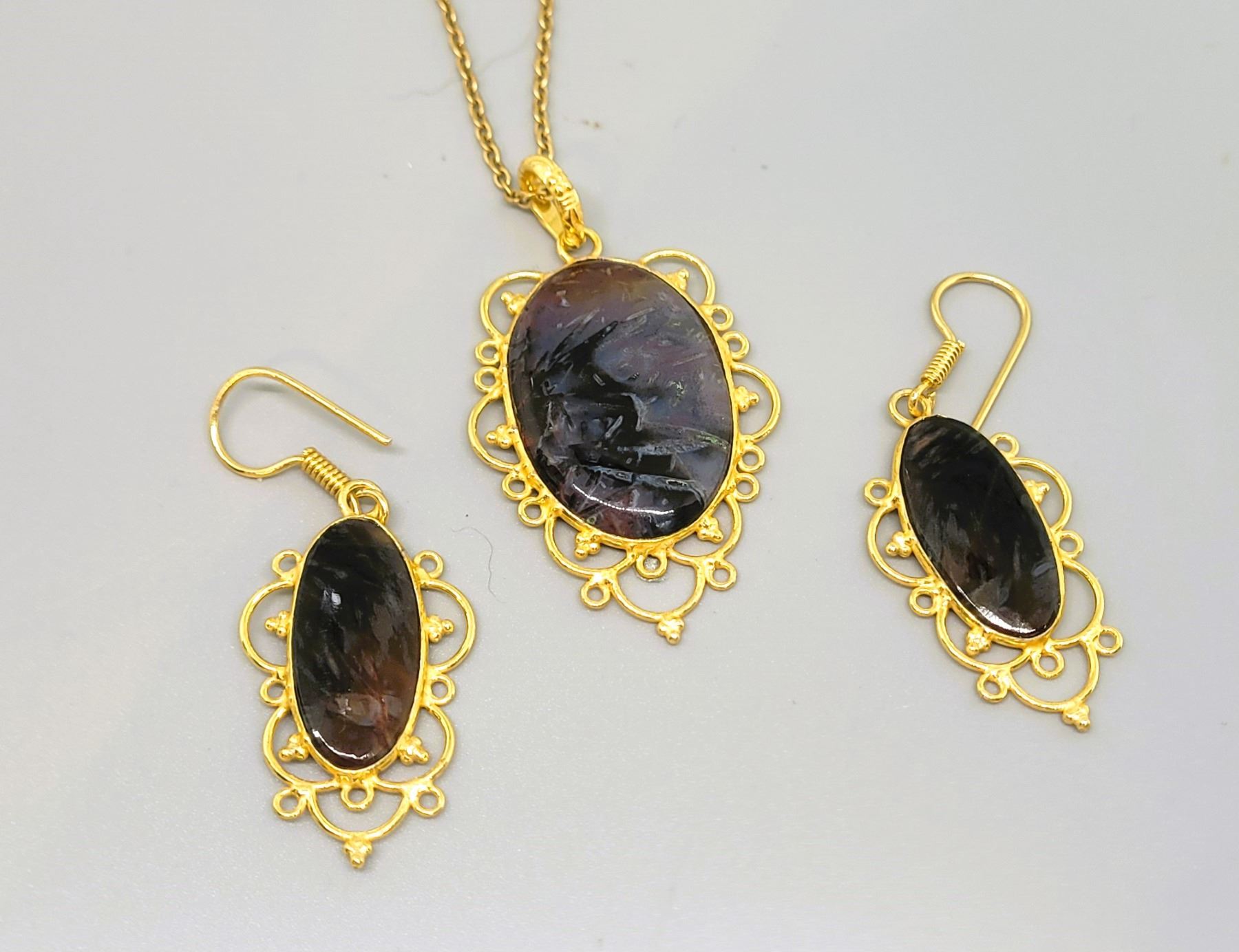 AGATE OVAL PENDANT ON 18" CHAIN AND MATCHING DROP EARRINGS. JEWELLRY