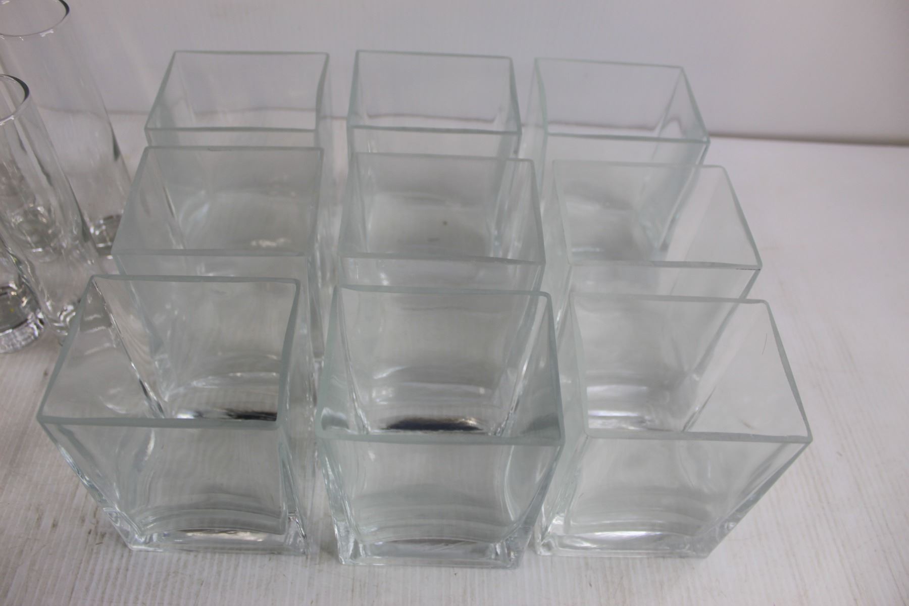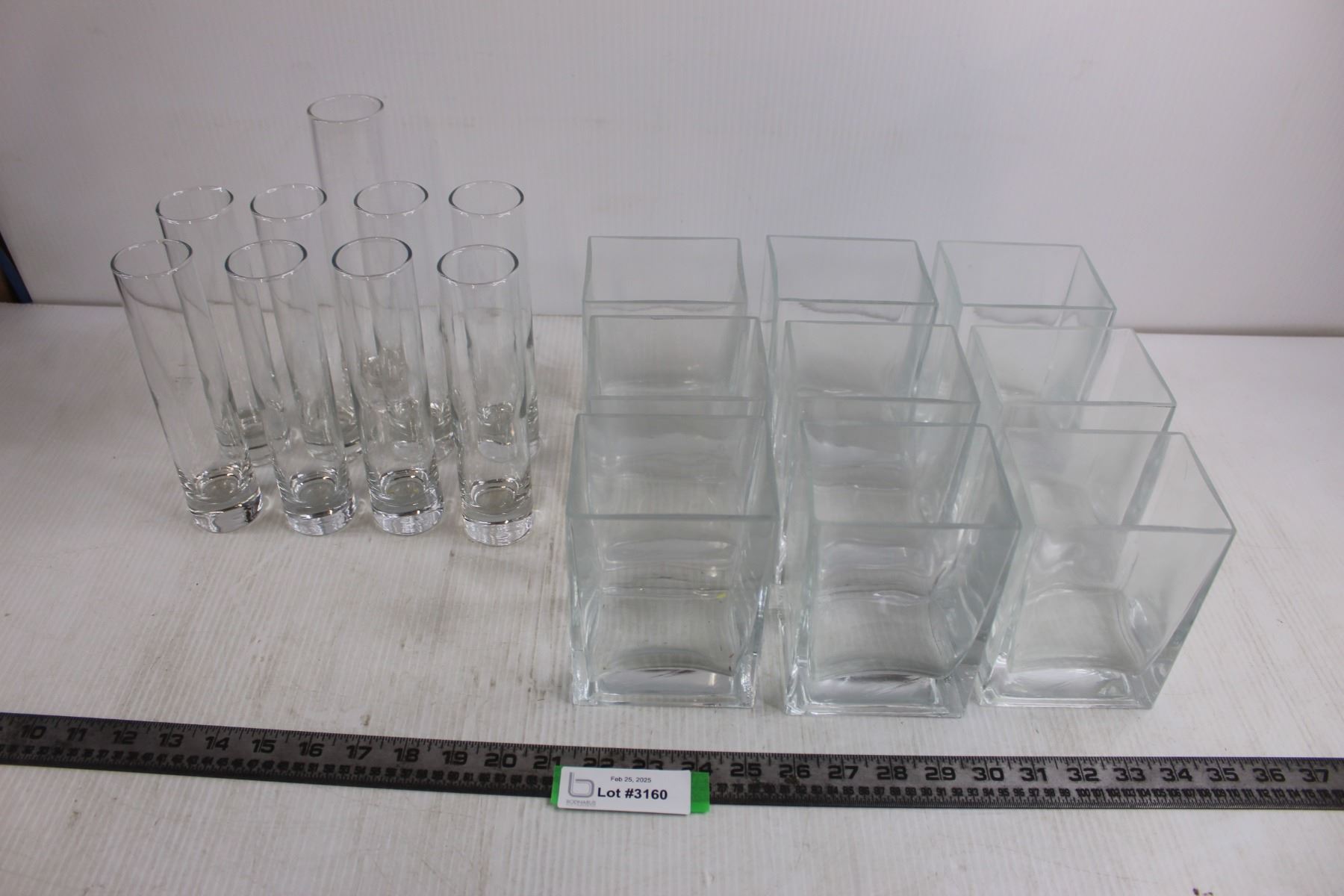 (18) Glass Vases (9 Round & 9 Rectangle)