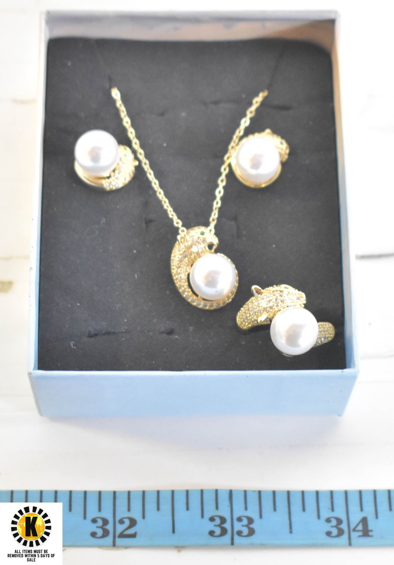 GOLD PLATED NECKLACE EARRING RING SIZE 7