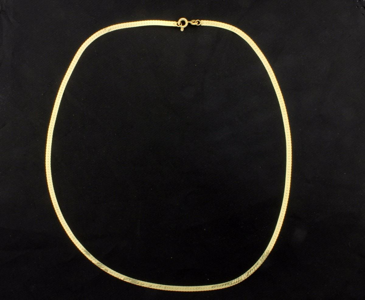 In 14K yellow gold it is 2.8mm wide. 6.4g