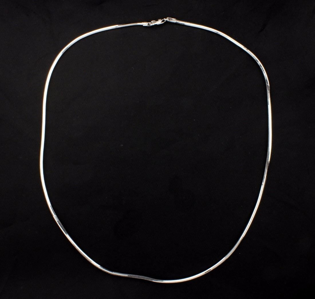 This chain is 14K white gold and is 1.6mm thick. It has a lobster clasp. 11.7g