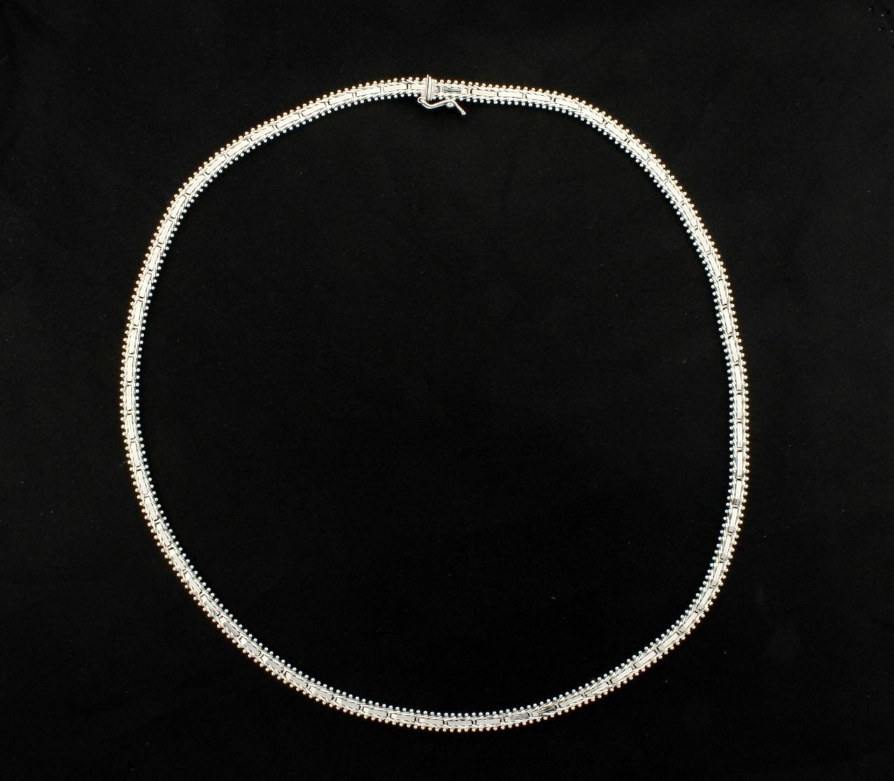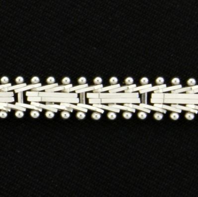 Unusual stick & ball/beaded edge design with safety clasp. Beautiful reflection of light off chain. 18.7g