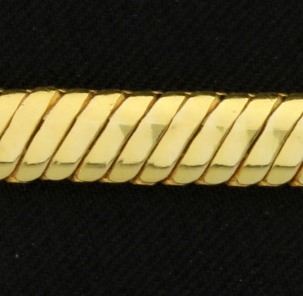 14K yellow gold, it is 5mm wide and has a safety clasp. 14.0g