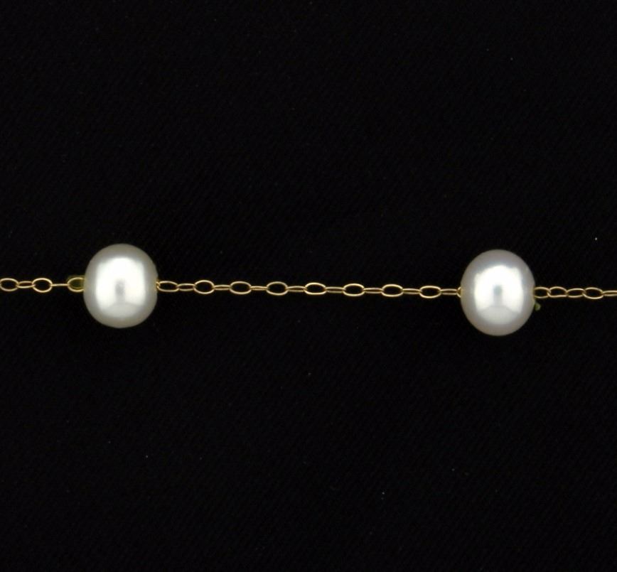 In 14K yellow gold it contains seven 6mm pearls with great luster. 2.1g