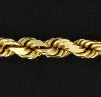 The chain is 14K yellow gold and is 4mm thick with a lobster clasp. 22.3g