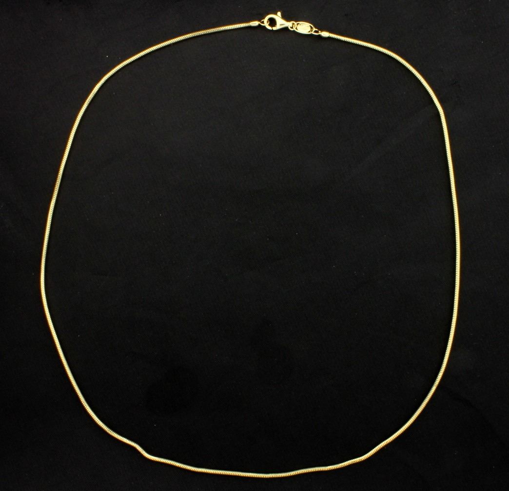 This chain is 14K yellow gold and is 1.4mm thick, it has a lobster clasp. 4.4g