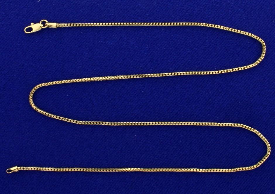 In 14k yellow gold. 1.4mm thick with lobster clasp. 6.4g.