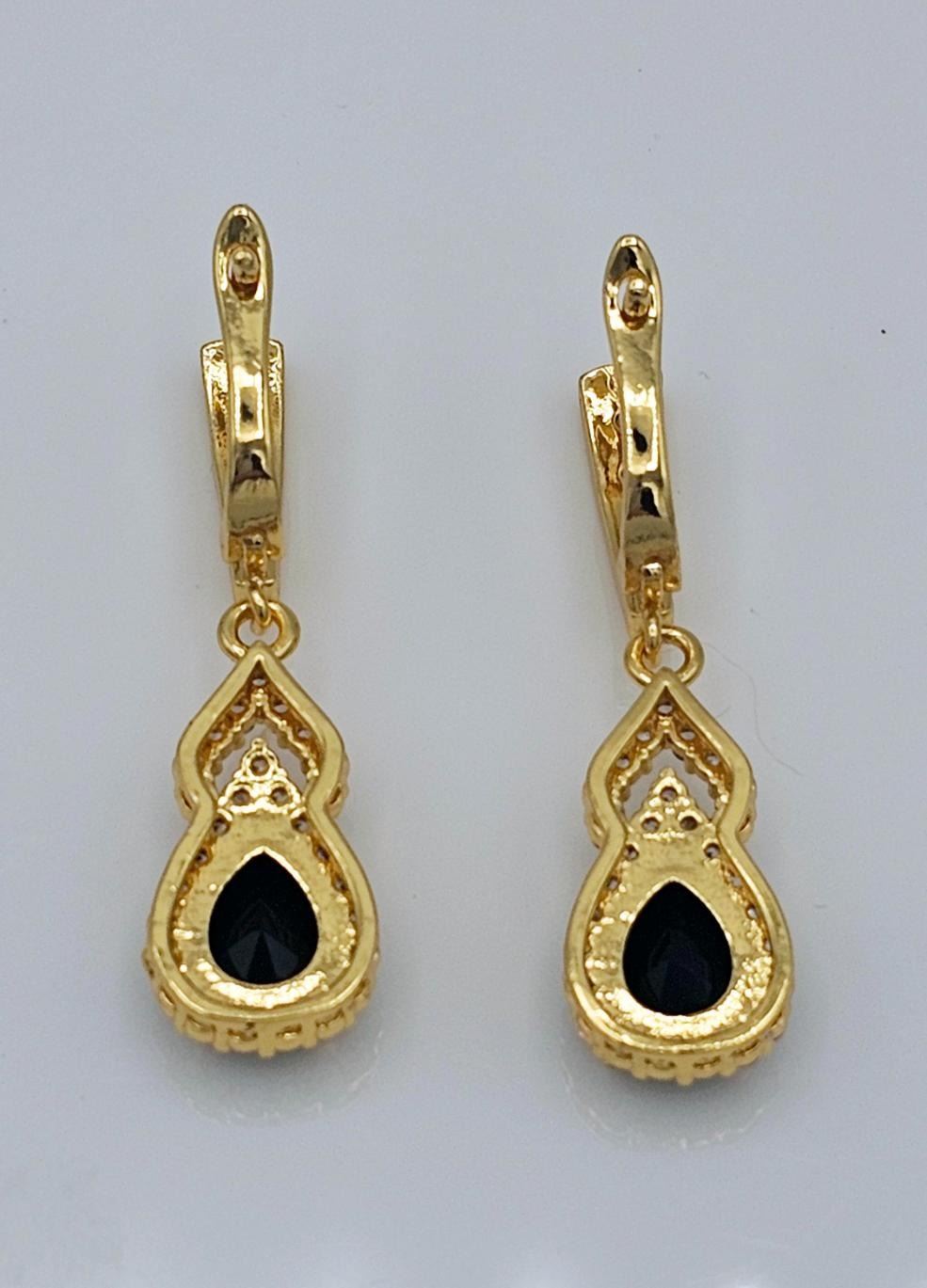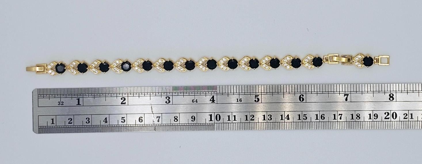 18 Kt Gold Plate 4 Piece Lab Simulated Black Diamond Jewelry Set. These Lab Faceted Gemstones Are Eye-Clean. They burst out with an flashing electric sparkle and a fine high polished mirror like hue. This complete 4 Piece Set Includes A 16 to 20 Inch Adjustable length necklace , a 7 to 8 Inch Adjustable Bracelet, 2 Earrings and an adjustable ring sz 6 to 9 to fit most sizes. All gemstones are mounted in 18 Kt yellow gold overlay . The Total Gram Wt Is Approximate Weight Of All 5 Pieces Is 31.2 Grams Or 156 Cttw. Don't buy just one piece of jewelry when you can have The Complete 4 Piece Set. Don't Miss This Springtime Package!!!