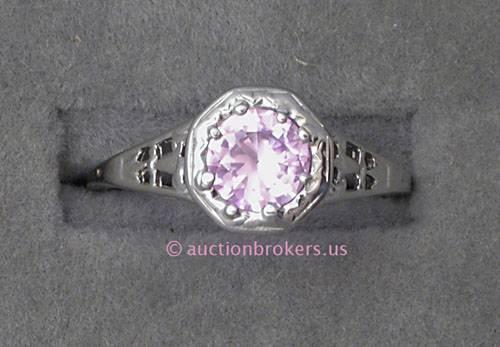 18 K WHITE GOLD VINTAGE SETTING FOR A ROUND CUT PINK COLOR STONE. 2.5 GRAMS.