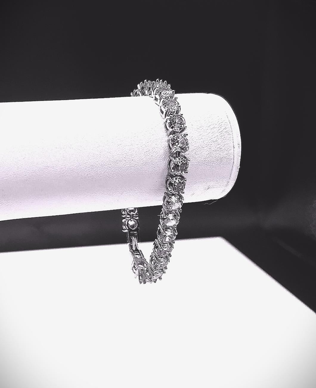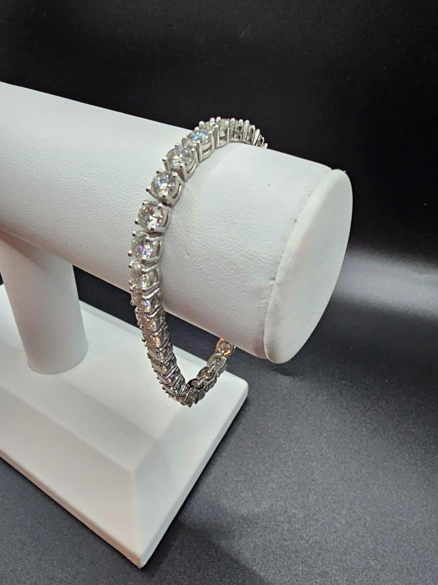 White Gold Plated Lab Simulated 26 Cwt. White Diamond Bracelet These 26 Gemstones are Brilliant Round Cuts Measuring 6.5 mm. They are Mounted In White Gold Overlay. Approx 7 " long.