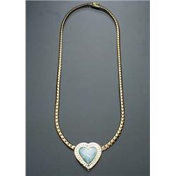 18-Karat Yellow Gold, White Opal and Diamond Necklace Set with a cabochon heart shape white opal...