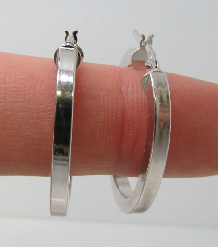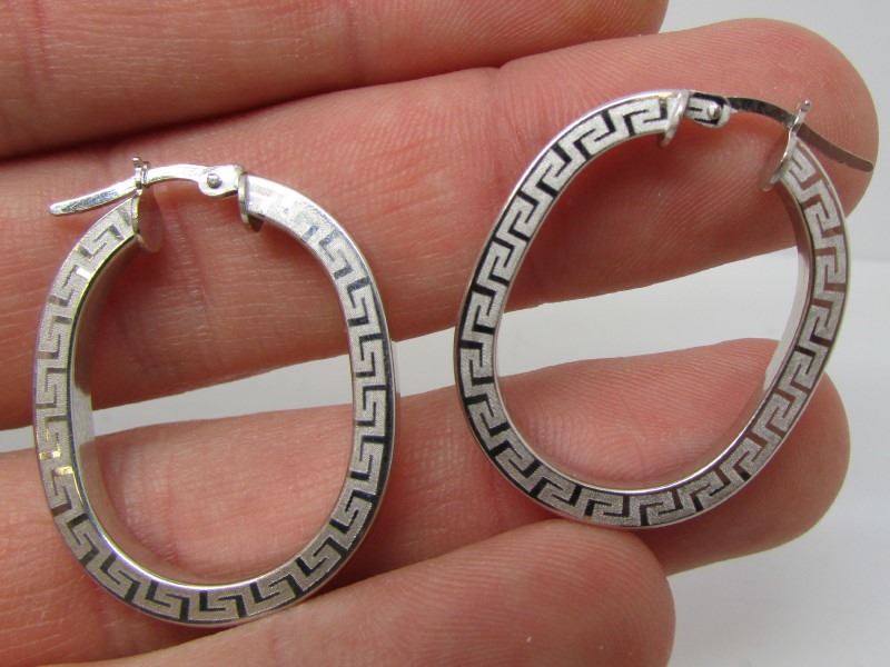 18 Kt White Gold Greek Key Oval Hoop Earrings - 3.9 Grams - 1 1/8" Long