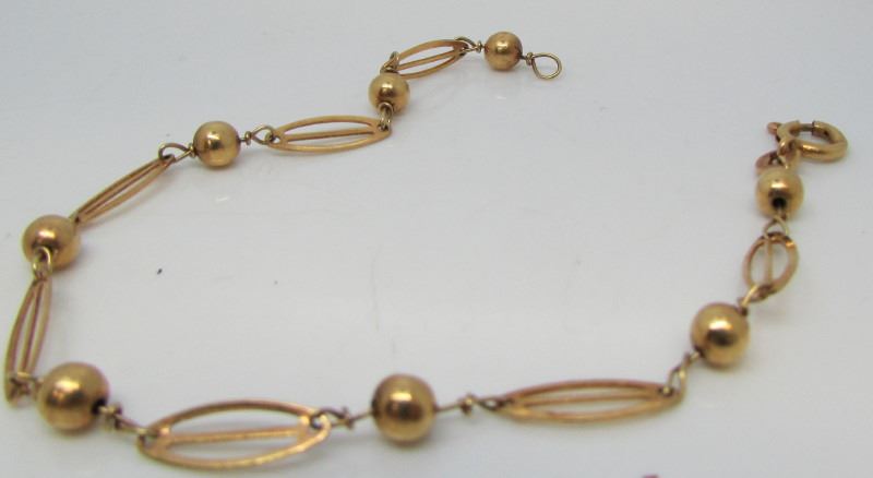18 Kt Yellow Gold Link & Bead Bracelet - 4.13 Grams - 7"